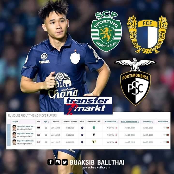 ทรานส์เฟอร์มาร์เกต เว็บไซต์สถิติข้อมูลฟุตบอลชื่อดัง เผยข้อมูลมี 3 ทีมดังในลีกโปรตุเกส ให้ความสนใจ สุภโชค สารชาติ ไปร่วมทัพ โดย 1 ในทีมนั้นคือ สปอร์ติ้ง ลิสบอน