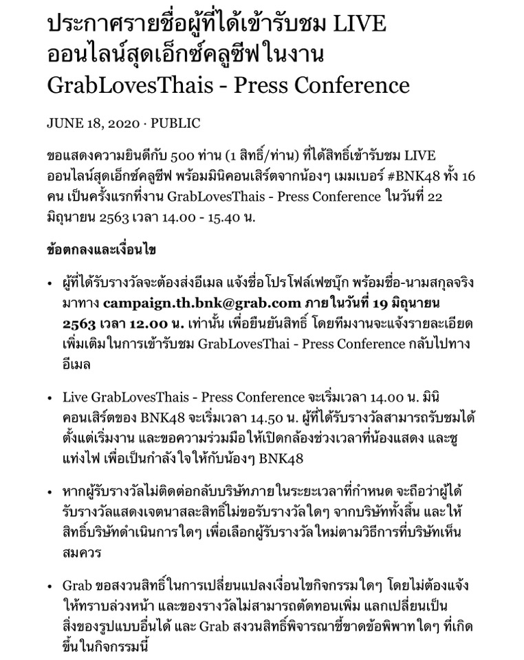 งาน Grab x BNK บ่ายสองนี้ คนทั่วไปดูได้ไหม รึเฉพาะผู้โชคดี 500 คน?