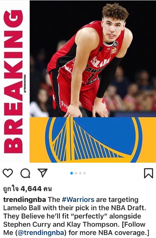ทีม GOLDEN STATE WARRIORS เล็งคว้าตัว LAMELO BALL มาร่วมทีมฤดูกาลหน้า