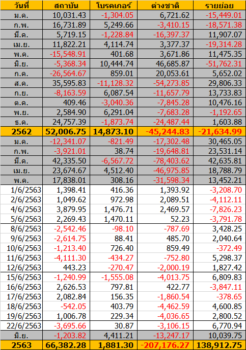 Sinthorn Summary 22/6/2563 : ต่างชาติขายสุทธิ -3,106.15 ลบ.