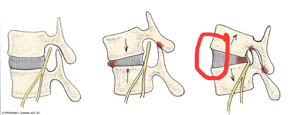 เช่น หากเรานั่งก้มหลังไปข้างหน้านานๆ ก็จะเกิดการบดกันขึ้น ซ้ำๆ แบบรูปตรงกลาง