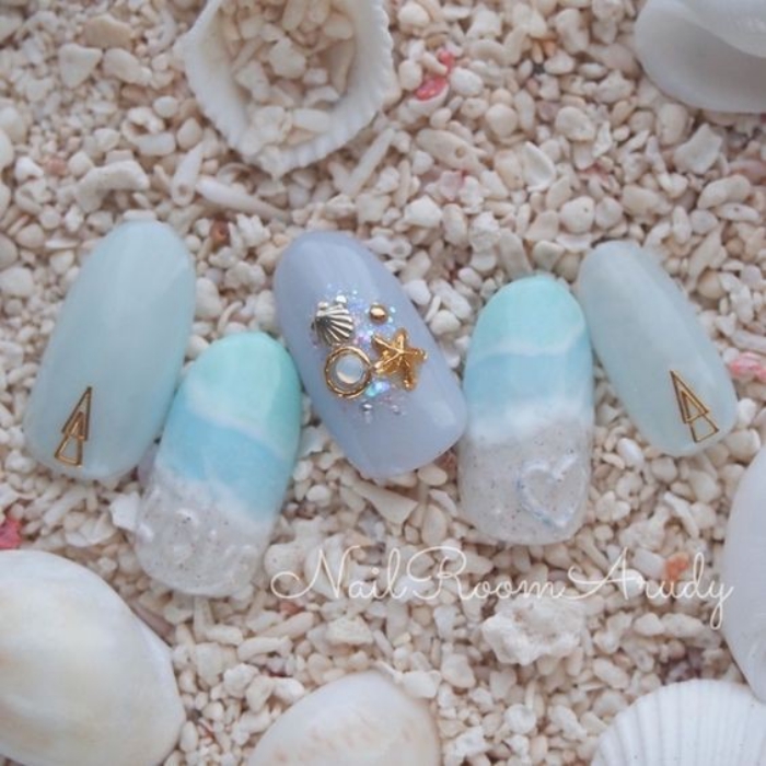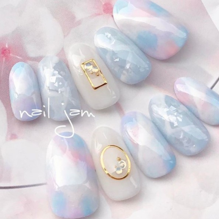 รีวิว ไอเดียการทำเล็บเจล โทนสีฟ้า