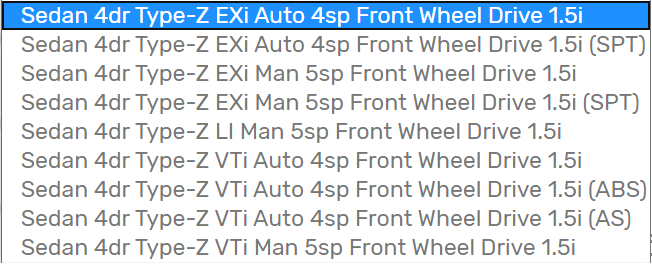 จากรูป รุ่นรถในบรรทัดที่ 1 ต่างจาก บรรทัดที่ 2 อย่างไรครับ