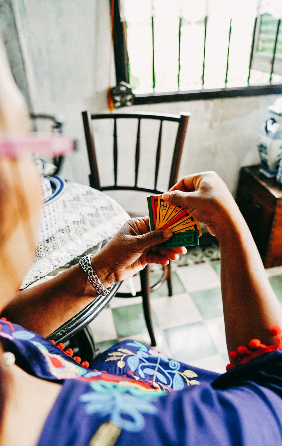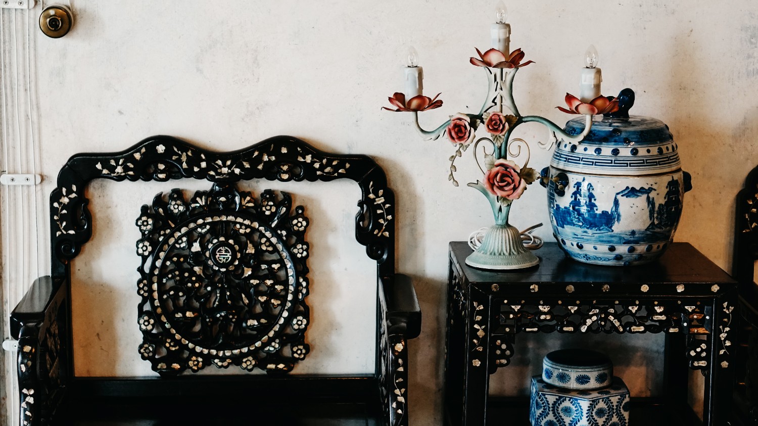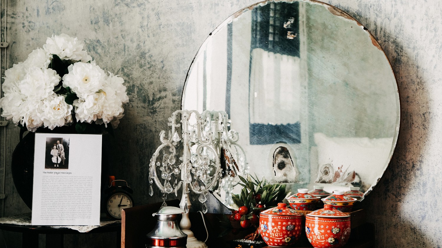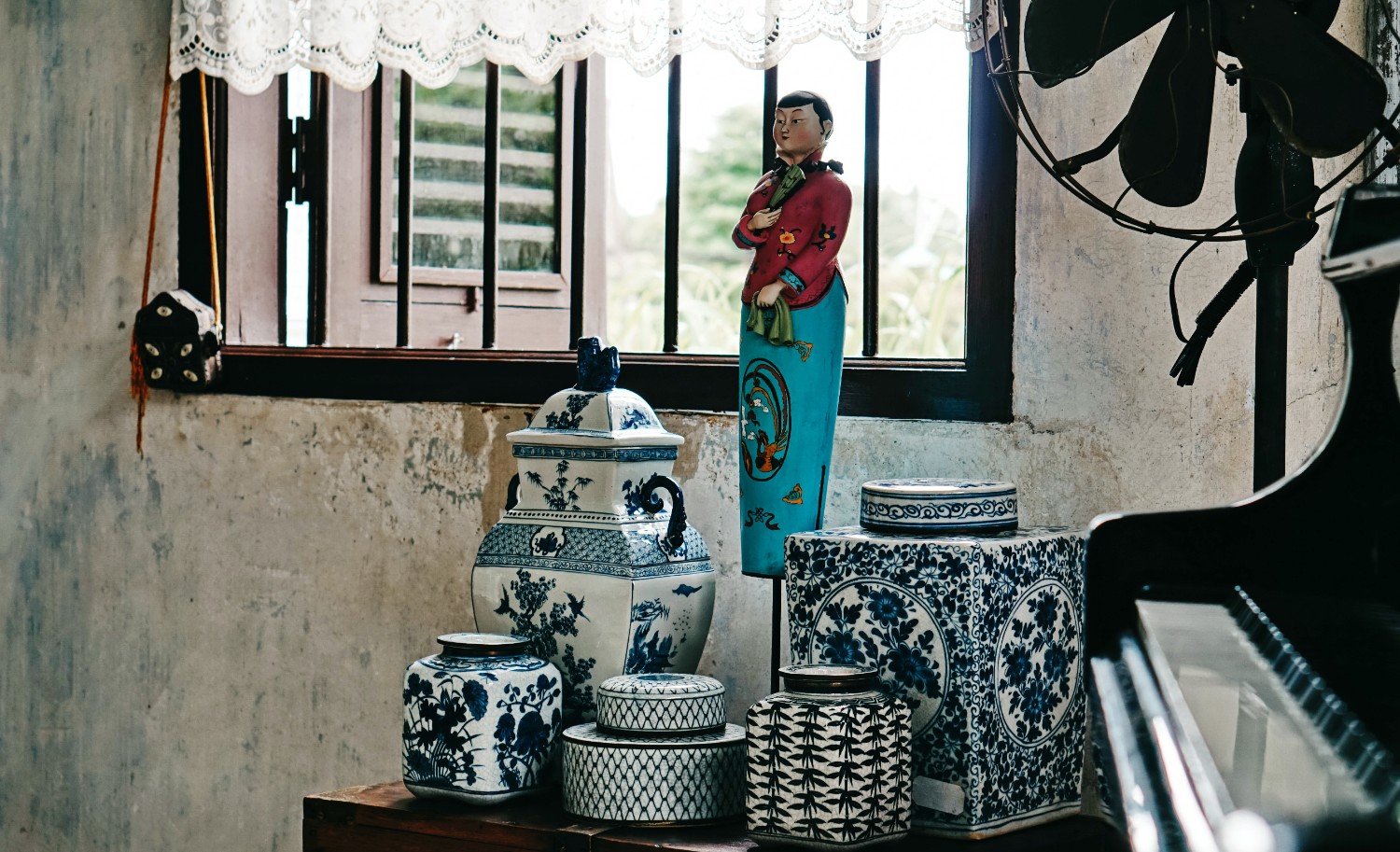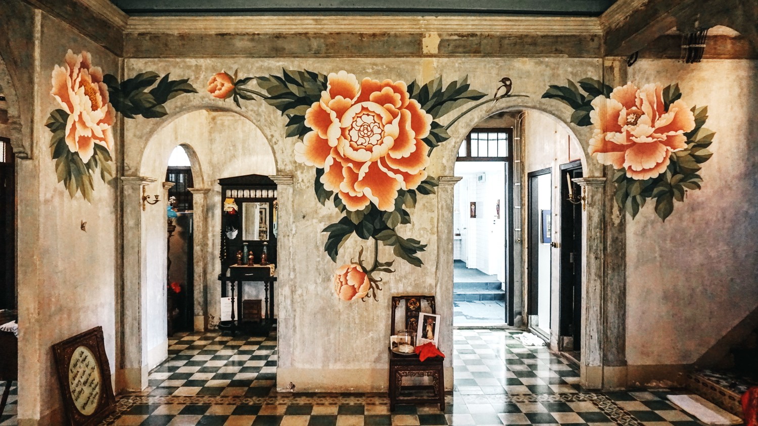 ตรงโถงกลางบ้านจะมีรูปวาดดอกโบตั๋นสีชมพูอ่อน เป็นสัญญลักษณ์ของความรักและความมั่งคั่งร่ำรวย กลีบด้านในดอกโบตั๋นเป็นรูปผู้หญิงเกล้าผมมวย บอกให้รู้เป็นนัยว่า บ้านนี้ผู้หญิงเป็นใหญ่นะ นอกจากนี้ในบ้านยังมีของกระจุกกระจิกสิ่งละอันพันละน้อย ซ่อนอยู่เต็มไปหมด