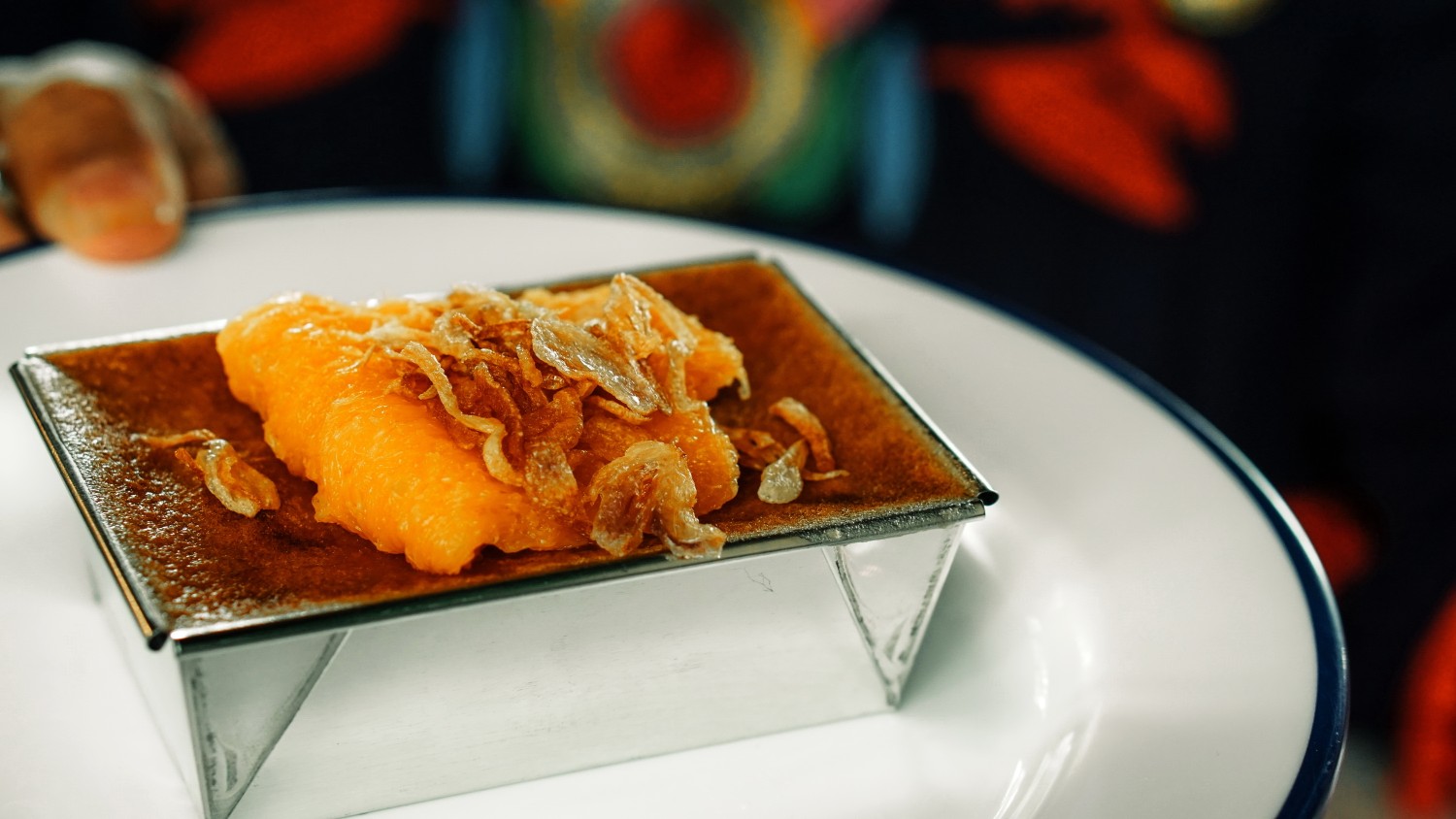 สตาร์ทด้วยหมี่กรอบตำรับวังบูรพา ที่นี่ใช้หมี่เส้นเล็กมาทอดกรอบ ราดด้วยน้ำราดรสเปรี้ยวหวานแถมหอม กลิ่นซ่านิดๆ จากส้มจี๊ดที่นำมาปรุง ทานคู่กับผักเคียง อีหล้ายอมยกนิ้วให้