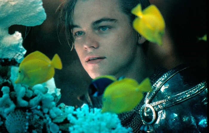 สร้างจากบทประพันธ์เรื่อง Romeo and Juliet ของ วิลเลียม เชกสเปียร์ นักกวีชาวอังกฤษ ซึ่งดิคาปริโอรับบทเป็นโรมีโอ เด็กหนุ่มผู้ตกหลุมรักสาวน้อยของตระกูลศัตรูที่ไม่ถูกกันกับครอบครัวของเขา นำมาซึ่งโศกนาฏกรรมแสนเศร้าที่ว่าด้วยความรักของคนหนุ่มสาว โดยนี่นับเป็นบทที่ทำให้สาวน้อยสาวใหญ่ทั่วโลกตกหลุมรักหน้าซื่อๆ กับรอยยิ้มกว้างๆ ของเขา โดยเฉพาะฉากลอบมอง จูเลียต ผ่านตู้ปลาที่ทรงเสน่ห์สุดๆ ไปเลย (><)