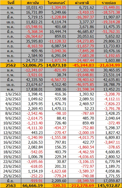 Sinthorn Summary 25/6/2563 : ต่างชาติขายสุทธิ -740.08 ลบ.