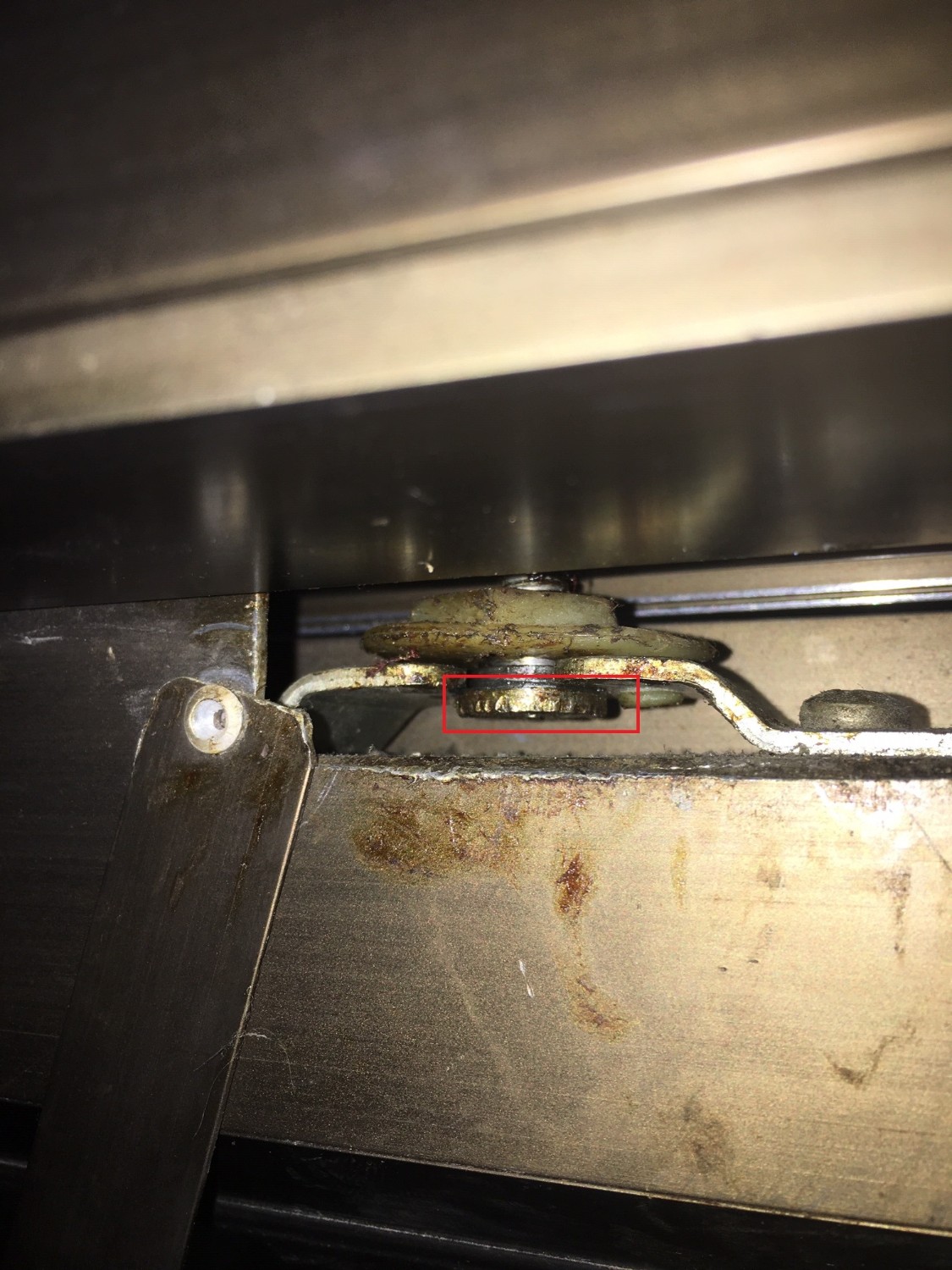 ที่บ้านเคยให้ช่างมาซ่อมรอบนึง และเห็นช่างทำอะไรบางอย่างตรงบริเวณกรอบสีแดง ซึ่งทำให้ประตูยกสูงขึ้นได้
