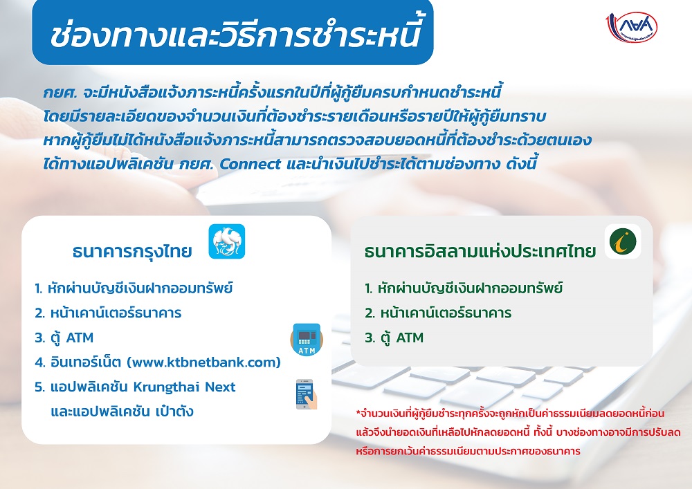 โดยการทำรายการยอดชำระจะตัดบัญชีกยศ.ในวันทำการถัดไปนะคะ