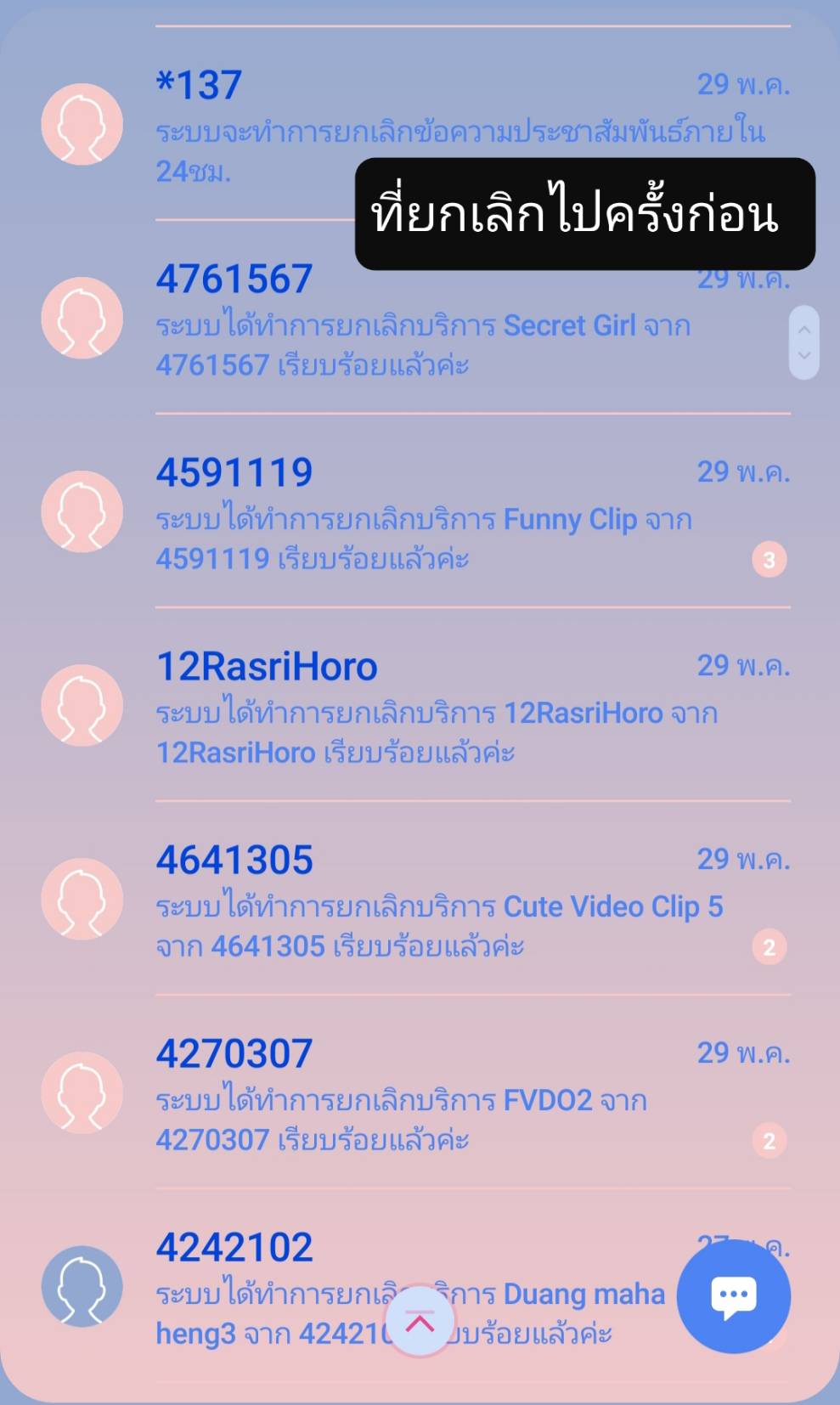 เนื่องจากเราได้รับข้อความสมัครบริการพวก SMS แปลกๆ จากที่ต่างๆเมื่อคราวก่อนจึงได้ค้นหาเบอร์กดยกเลิกไปในวันที่ 29-5-63