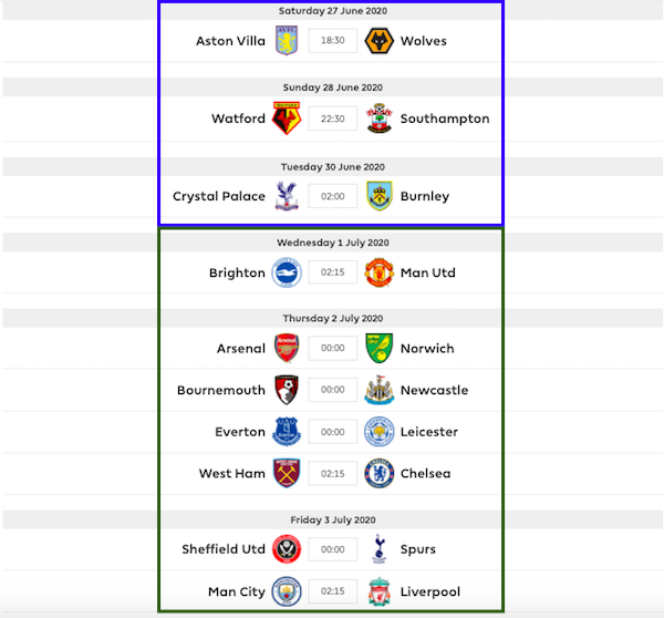สังเกตว่าพรีเมียร์ลีก Gameweek 32+ จะมีเตะครอบคลุมทั้งสุดสัปดาห์ และกลางสัปดาห์