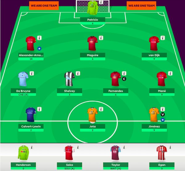 คะแนนโดยรวมของ Gameweek 31+ ถือว่าไม่เลว แต่การพลาดเป้าเลือกกัปตันเป็นบรูโน่ ก็ส่งผลให้เสียประโยชน์ตรงนี้ไปพอสมควร เพราะตัวเลือกอื่นอย่างมาเน่ หรือฆิมิเนซ ต่างทำคะแนนได้ดีกว่า