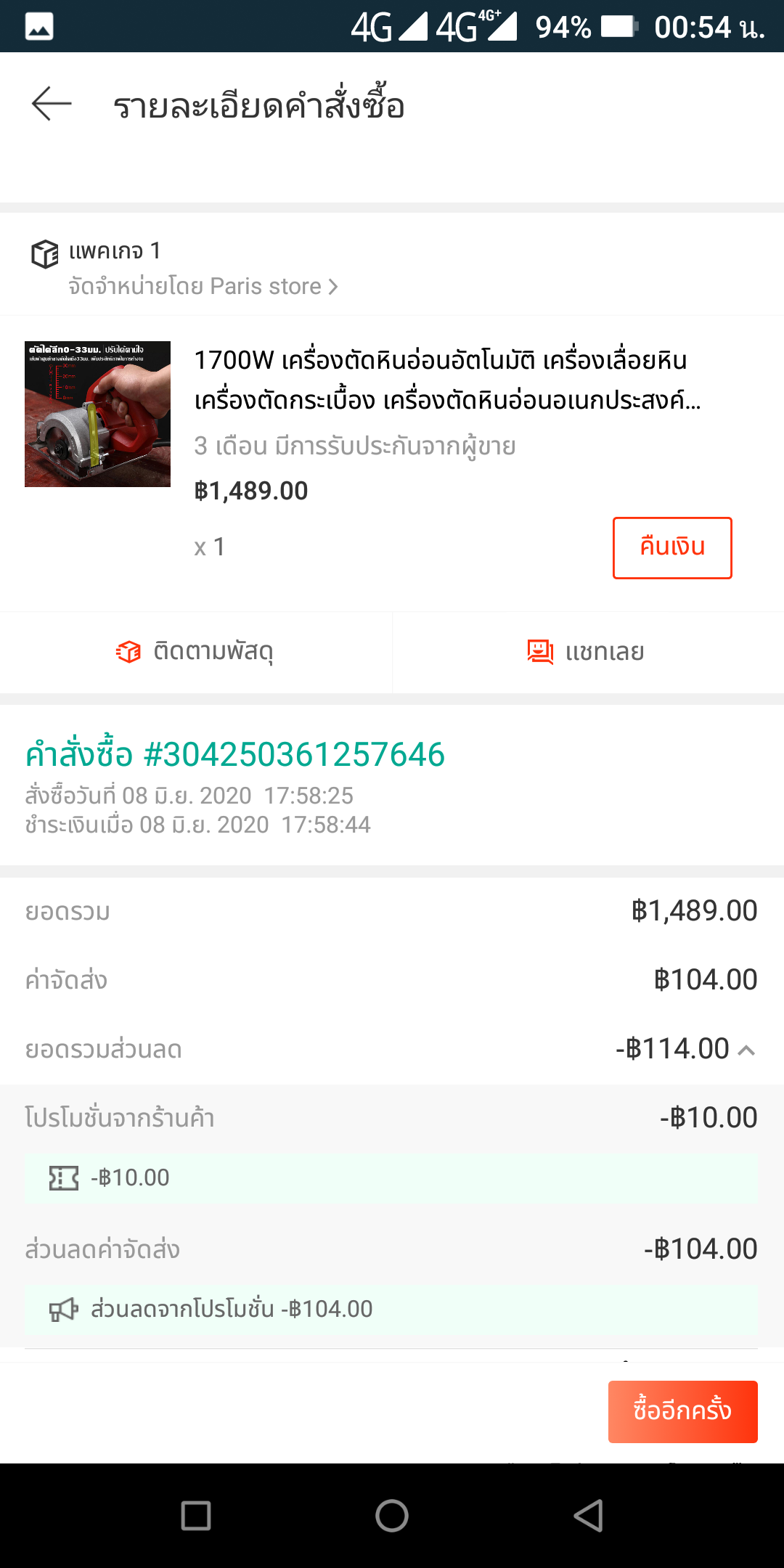 กรณีร้านค้ายกเลิกสินค้า