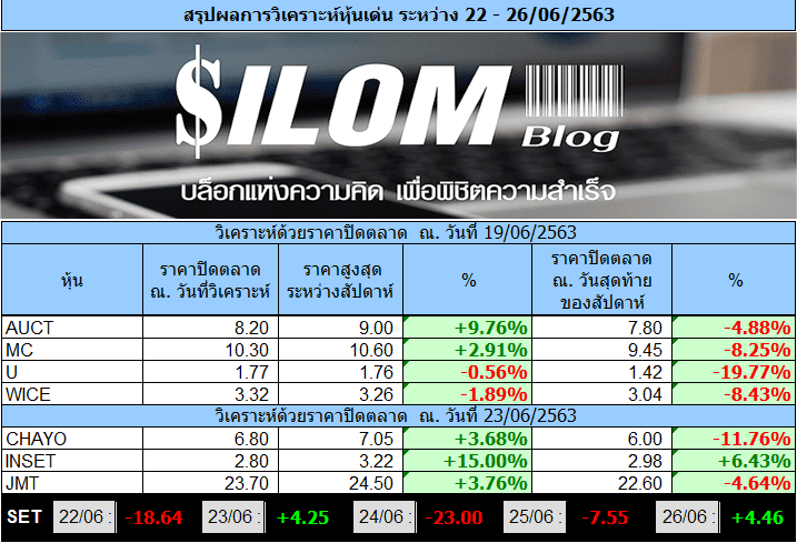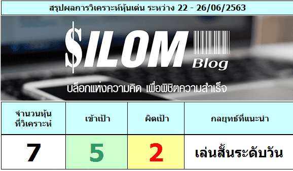 silomblog : สรุปผลการวิเคราะห์หุ้น ระหว่าง 22 – 26/06/2563