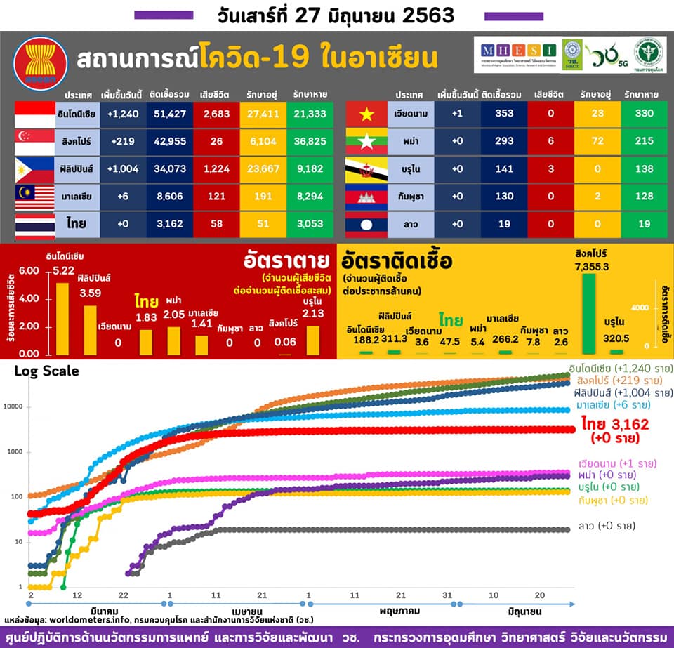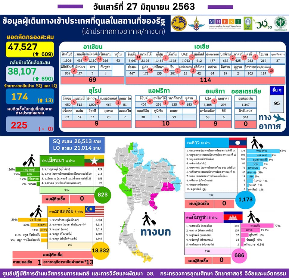รายงานข้อมูลสถานการณ์การติดเชื้อโควิด-19 ณ วันเสาร์ที่ 27 มิถุนายน 2563