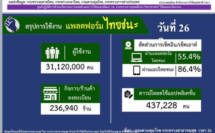 ยอดผู้ใช้ไทยชนะ ประจำวันที่ 26 มิถุนายน 2563