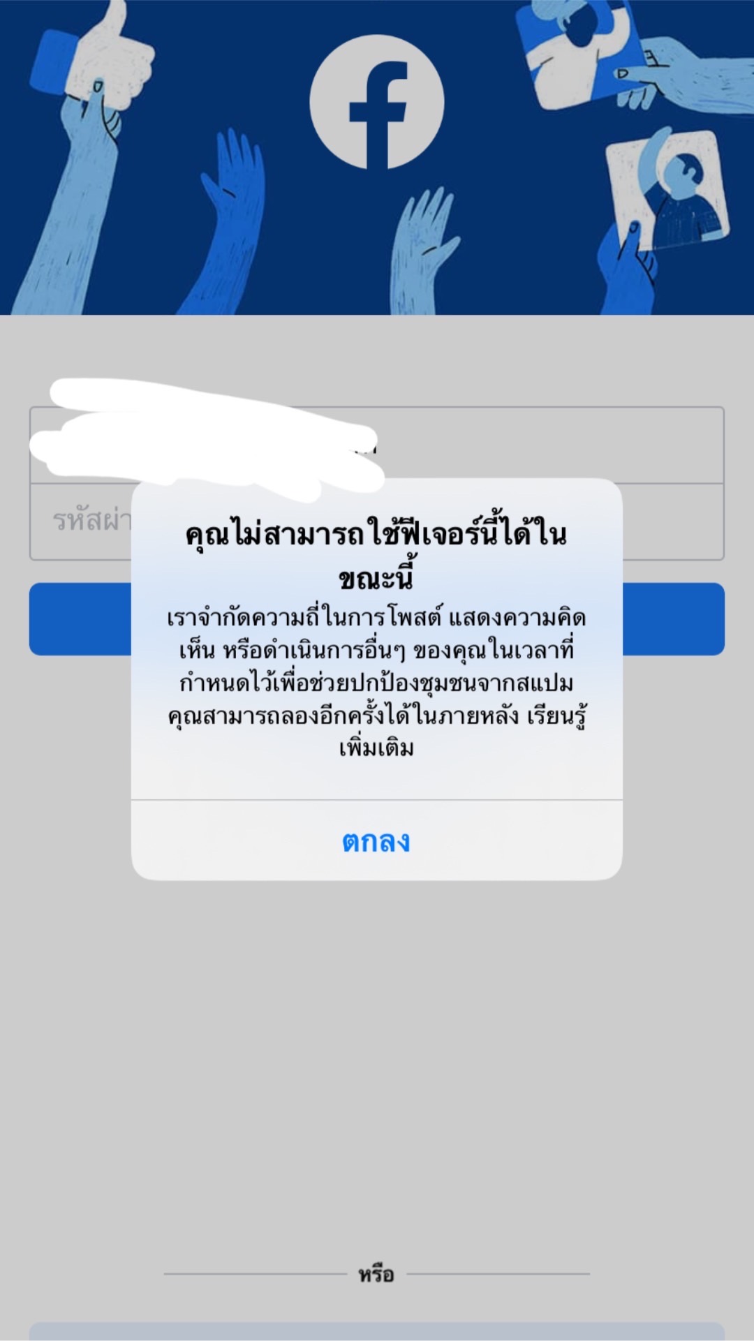 Facebook ขึ้นเเบบนี้ควรทำยังไงครับ รอกี่วันถึงกลับมาปกติ