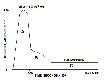 (รูปนี้จะให้ครบสมบูรณ์ต้องมีต่อปิดท้ายอีกจังหวะ ปลายคลื่นต้องร่วงตกลงอีกครั้งด้วย หลังประจุถ่ายเทระหว่างฟ้ากับดินหมดเกลี้ยง ตูม... แช่... แวบ..)