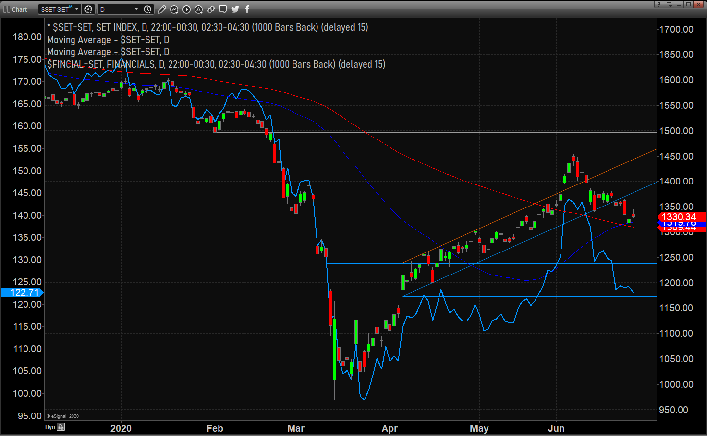 ดัชนีหุ้นกลุ่มแบงก์ FINCIAL ปิดที่ราคาตํ่าสุดของเดือน แสดงให้เห็นถึงความอ่อนแอของ SET