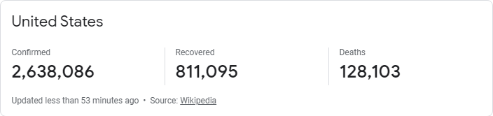 30/06/20 ...................... จำนวนผู้ติดเชื้อ ....... 2638086 .......... เพิ่มขึ้น 44917