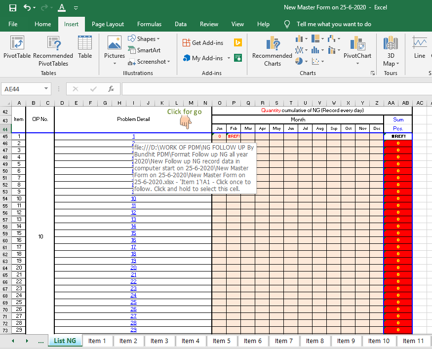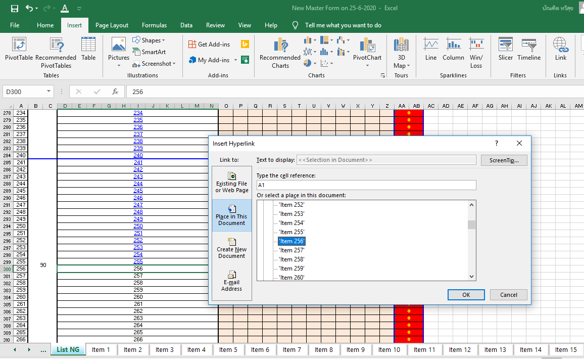 คือว่าที่ Sheet หลัก(ชืื่อ List NG) ผมต้องการดึงผลรวมใน Sheet ย่อย (ชื่อ 1,2,3ถึง 600)มาแสดง แต่เนื่องจากต้องแสดงถึง600บันทัด จึงอยากจะลากสูตรลงมาให้ชื่อ Sheetย่อยเปลี่ยนเองอัตโนมัติ แต่ลองลากแล้วมันไ