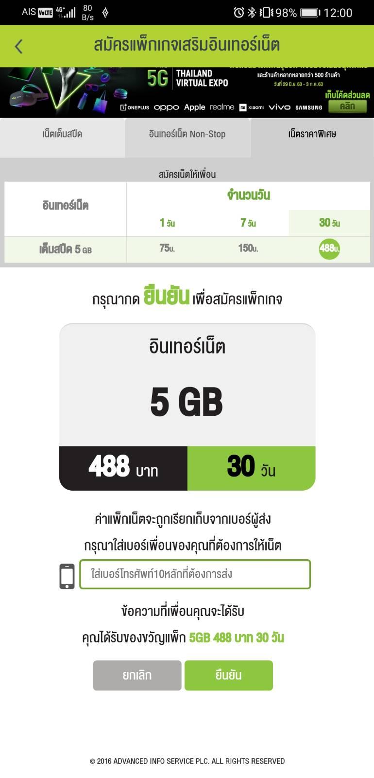 ไปเจอแพ็คเกจนี้มา คือเมื่อใช้งายไปแล้ว ความเร็วเน็ตไม่ลดสปีด คือความเร็วสูงสุด 5GB หรือความเร็วเต็มสปีด 5GB