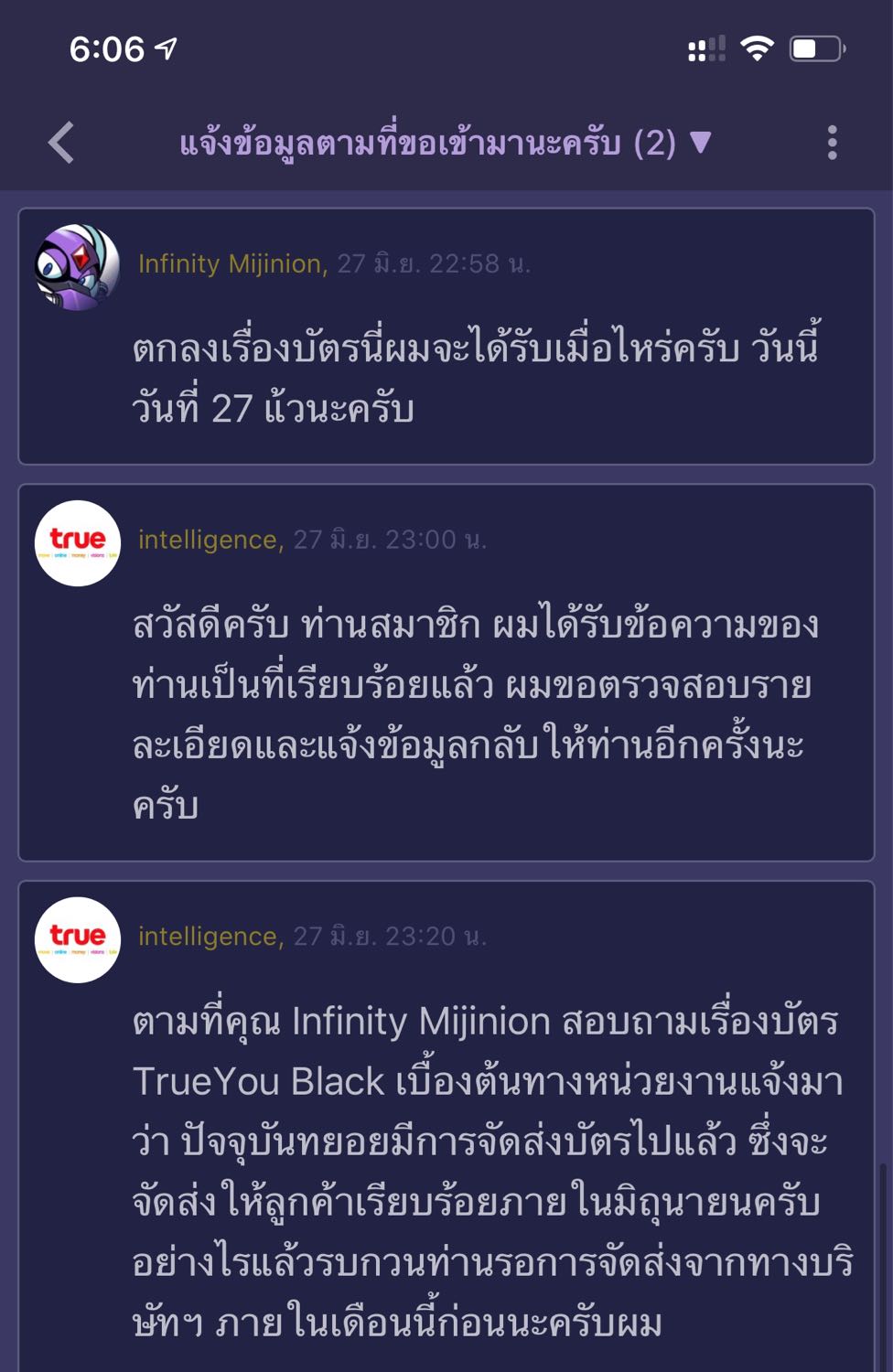 True You call center โทรไปยังมาบอกอีกว่าเดี่ยวจะตามเรื่องให้อีก โห นี่สรุป กี่วันกี่ชาติ จะได้รับบัตรครับ ดังนั้นใครใช้ AIS Serenade หรือ Dtac Blue Member ต่อไปดีแล้วครับ อย่าย้ายมาค่ายนี้เลย หลอกลวง ผัดผ่อนไปวันๆแค่ นั้นใช้แต่ มุกเดิม ว่ากำลังตามเรื่อง 1-3 วันทำการ ตามมันเข้าไป