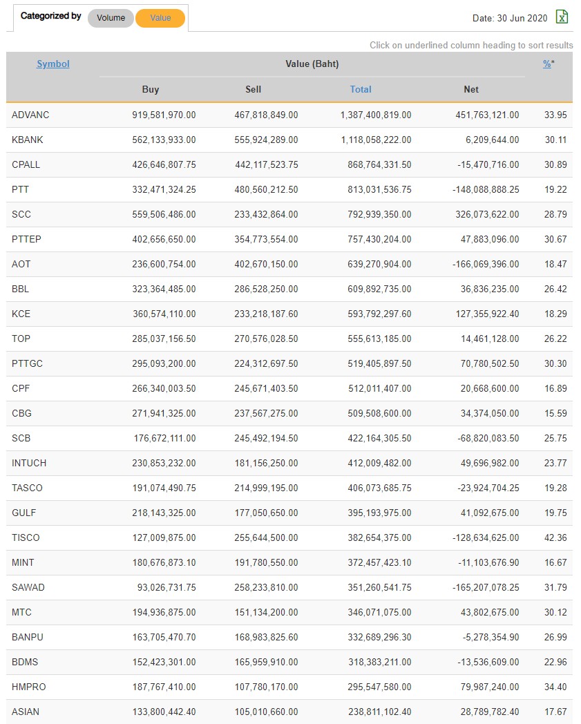 นักลงทุนต่างชาติ NVDR ซื้อ-ขาย มูลค่าสูงสุด 25 อันดับ 30/06/63