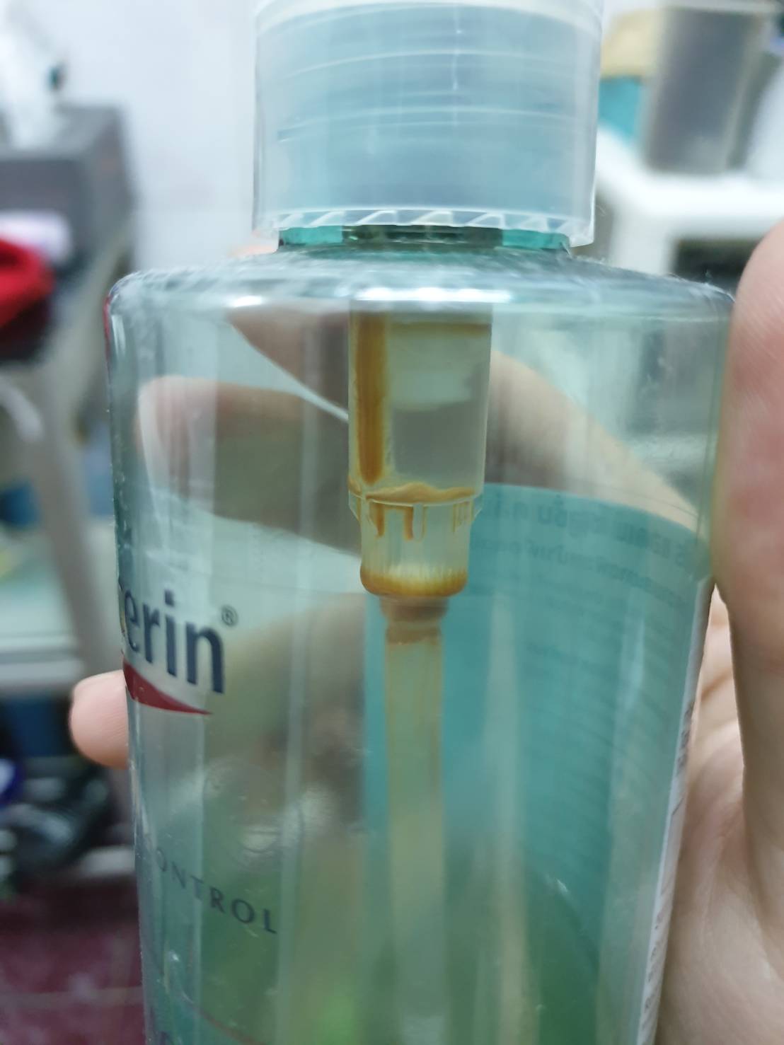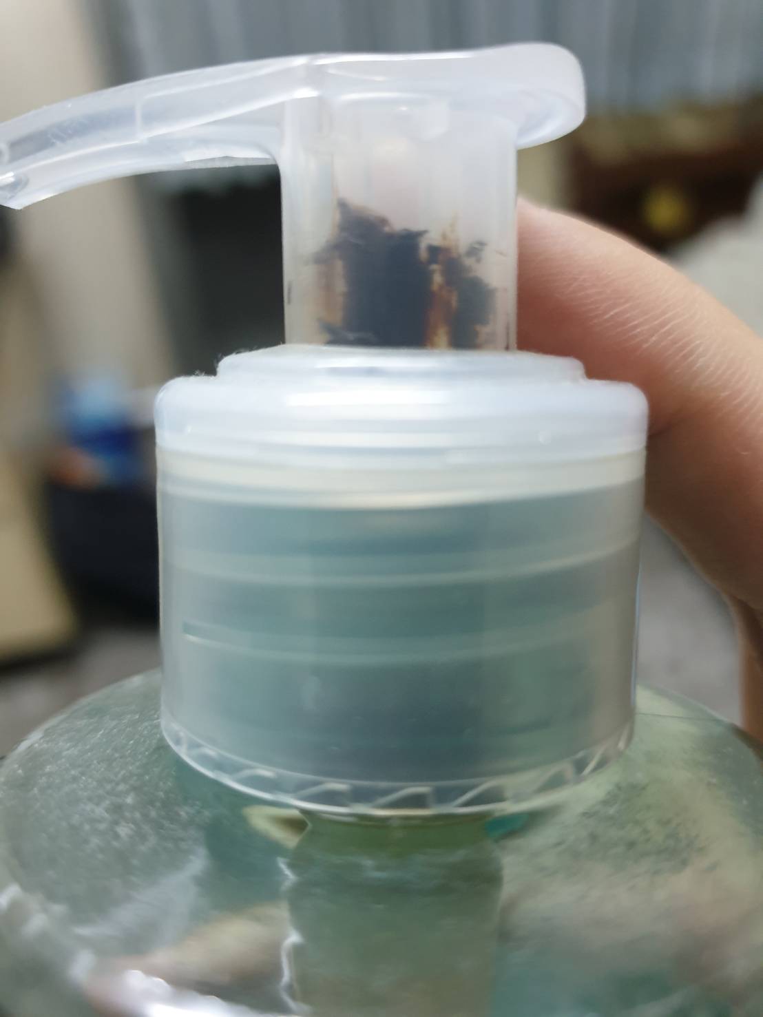 วันที่ 26/06/2563 ตาเหลือบไปเห็นคราบดำๆที่ขวด ตอนแรกคิดว่าแมลงสาบเข้าไปตายหรือเปล่า ปรากฏไม่ใช่ ตรงเกลียวขวดเป็นสีน้ำตาลดำทั้งหมด และตัวเจลกลายเปนสีน้ำตาลทั้งขวด