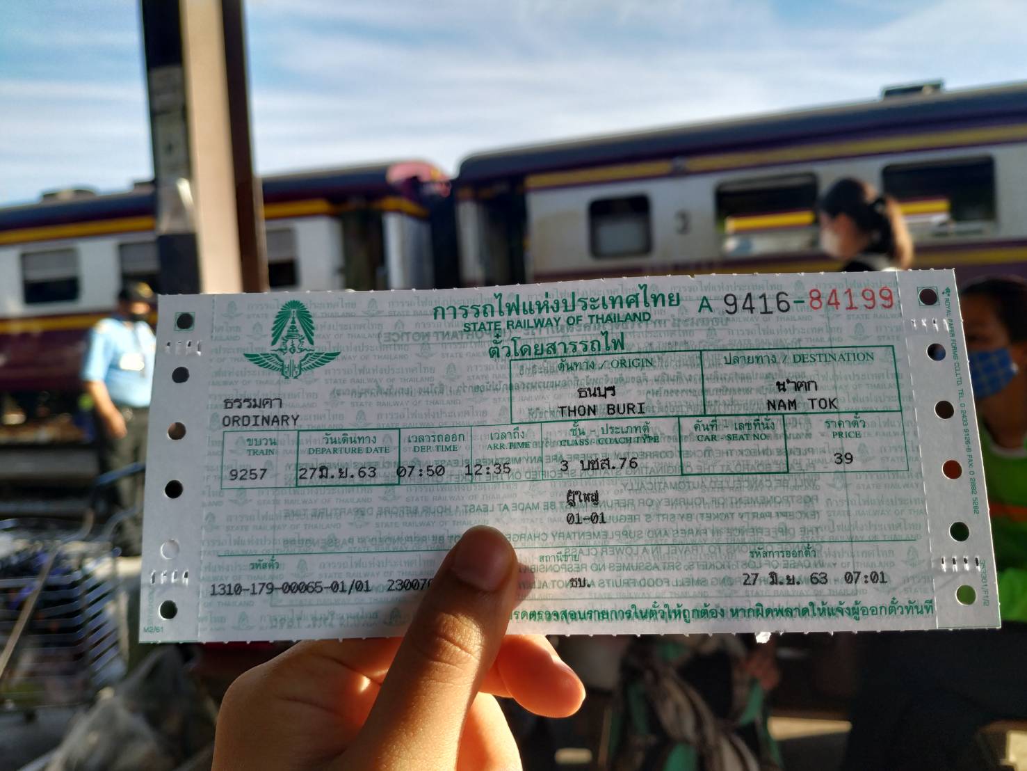 สวีดัด สวัสดีค่าาาทุกคน คิดถึงกันไหมเอ๋ย ?? วันนี้เราก็จะมาเล่าประสบการณ์การเดินทางไปกาญจนบุรีคนเดียวแบบสาวน้อยแบกเป้ โดยจะเล่าสรุปทุกค่าใช้จ่ายให้ฟังนะคะ รอบนี้ไปแบบประหยัดไหม ก็ไม่ค่อยประหยัดเท่าไหร่ค่ะ แต่บอกเลยว่าคุ้มค่าที่ได้ไปแน่นอนค่ะ มา !! จะรอช้าอยู่ใยมาเข้าเรื่องกันเลย เริ่มแรกเราจองที่พักจาก Agoda ก็ได้ที่พักคือที่ 'ญาญี โฮมสเตย์' นะคะ ราคาไม่แพงรวมทุกอย่างก็ 445 บาทค่ะ โดยพาหนะที่เราไปรอบนี้ก็จะเป็นรถไฟเหมือนเดิมเพิ่มเติมคือต้องไปขึ้นที่ฝั่งธนค่ะ (ไม่เคยข้ามไปฝั่งธนเลยค่ะ555555) ด้วยความไม่มีอะไรให้กลัวเพราะใจจะไปให้ได้ ไปค่ะข้ามไปฝั่งธนกันโดยรถไฟไปกาญจะมีรอบ 07.50 น. นะคะราคาตั๋ว 39 บาทค่ะ ที่หมายที่เราจะไปคือไทรโยคนะคะ