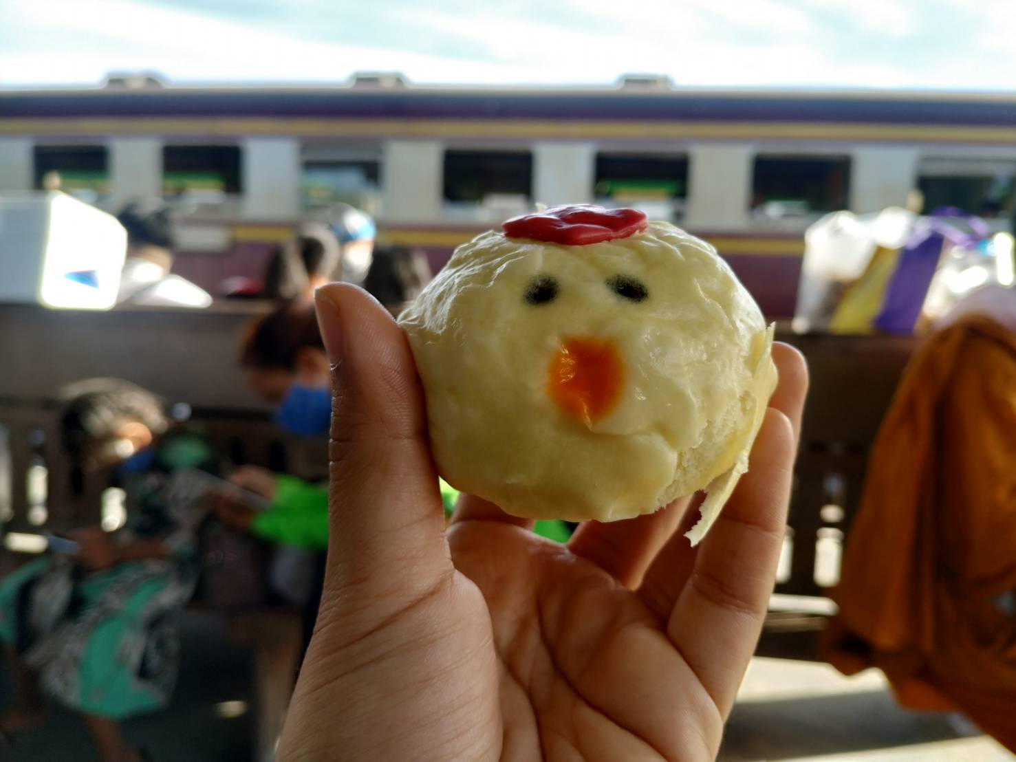 ซาลาเปาค่ะ (ใครอยากเป็นสปอนเซอร์ซาลาเปาต้องมาแล้วค่ะ555) ลูกนี้ซื้อมา 12 บาทรองท้องก่อนรถไฟมา และไม่นานเกินรอรถไฟก็เทียบชานชาลาแล้ววววว ปู้นๆๆๆ
