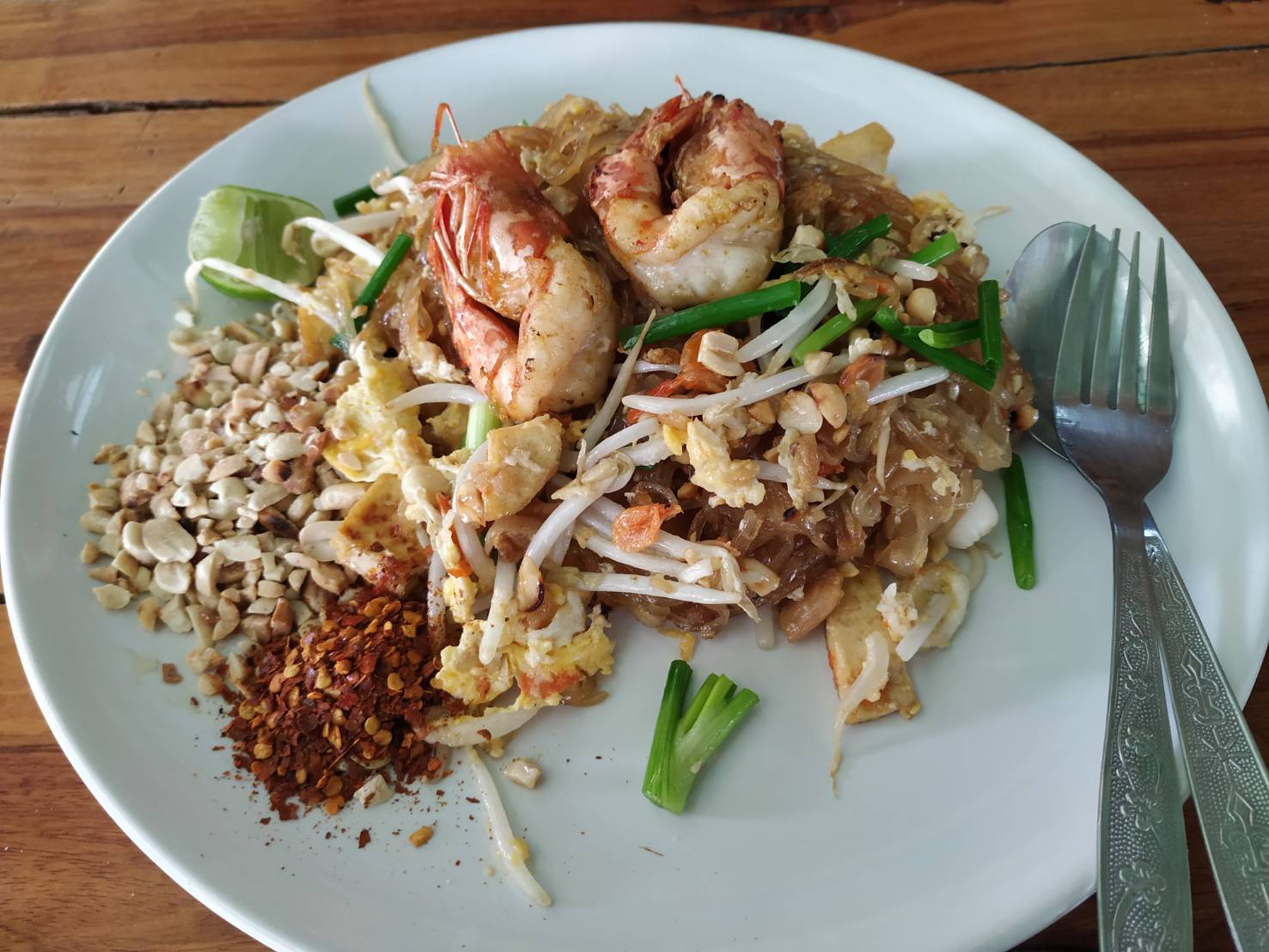 พอเราชมรอบๆ เลยไปคุยกับพี่เจ้าของที่พักเรื่องเช่ารถมอไซค์จะอยู่ที่ราคา 200 บาทจากปกติ 300 นะคะ พอตกลงอะไรเสร็จพี่แกก็ไม่ลืมจะถามว่าเดินทางมาเหนื่อยๆกินอะไรมารึยัง?? ก่อนจะยื่นเมนูให้ (ตอนแรกแอบกลัวราคาจะแรงไม่ใช่ไรนะคะ งกค่ะงก !! ตามสเต็ปรับบทนางงกค่ะแต่ผิดคาดอาหารไม่แพงแถมได้เยอะด้วยค่ะ) อย่างผัดไทกุ้งโสดดดด ราคา 60 บาทค่ะ