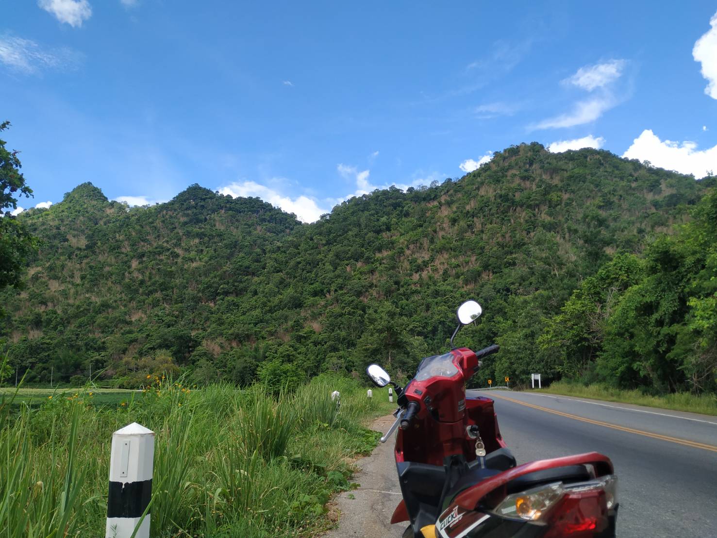 หลังจากทานเสร็จเรียบร้อยเราก็ไปนั่งถามพี่เจ้าของที่พักว่ามีที่เที่ยวที่ไหนสวยๆไหมคะ พี่แกเลยแนะนำให้แฟนของพี่แกแนะนำเพราะแฟนพี่แกจะรู้จักที่เที่ยวสวยๆมากกว่า จากนั้นแฟนของพี่เจ้าของที่พักไม่รอช้าปักหมุดในกูเกิ้ลแมพเพี๊ยบเลยจ้าาา (ใจเย็นคุณพี่น้องจะไปไหวไหมเนี่ยยย) เขาก็บอกบางที่เป็นอุทยานซึ่งตอนนั้นอุทยานยังไม่เปิดก็ต้องตัดออกไป แต่เรามีที่นึงในใจที่ดูในกูเกิ้ลแมพแล้วอยากไปดูด้วยตาตัวเองว่ามันจะเป็นยังไงเหมือนที่จินตนาการไว้ไหม 55555 ไม่รอช้าค่ะหลังจากทานข้าวเสร็จพักสักหน่อยก็เตรียมแง๊นแล้วจ้าาา เราเริ่มออกเดินทางตอนช่วงบ่ายสองกว่าๆ แต่ก่อนออกมาพี่เจ้าของที่พักก็บอกอย่าซิ่งมากนะค่อยๆไป (ยังกะพี่สาวห่วงน้องสาว) พอเราขี่มาได้สักพักไม่ลืมที่จะถ่ายภาพระหว่างทาง อย่าช้าค่ะจอดรถ แชะ ! ไปหนึ่งที