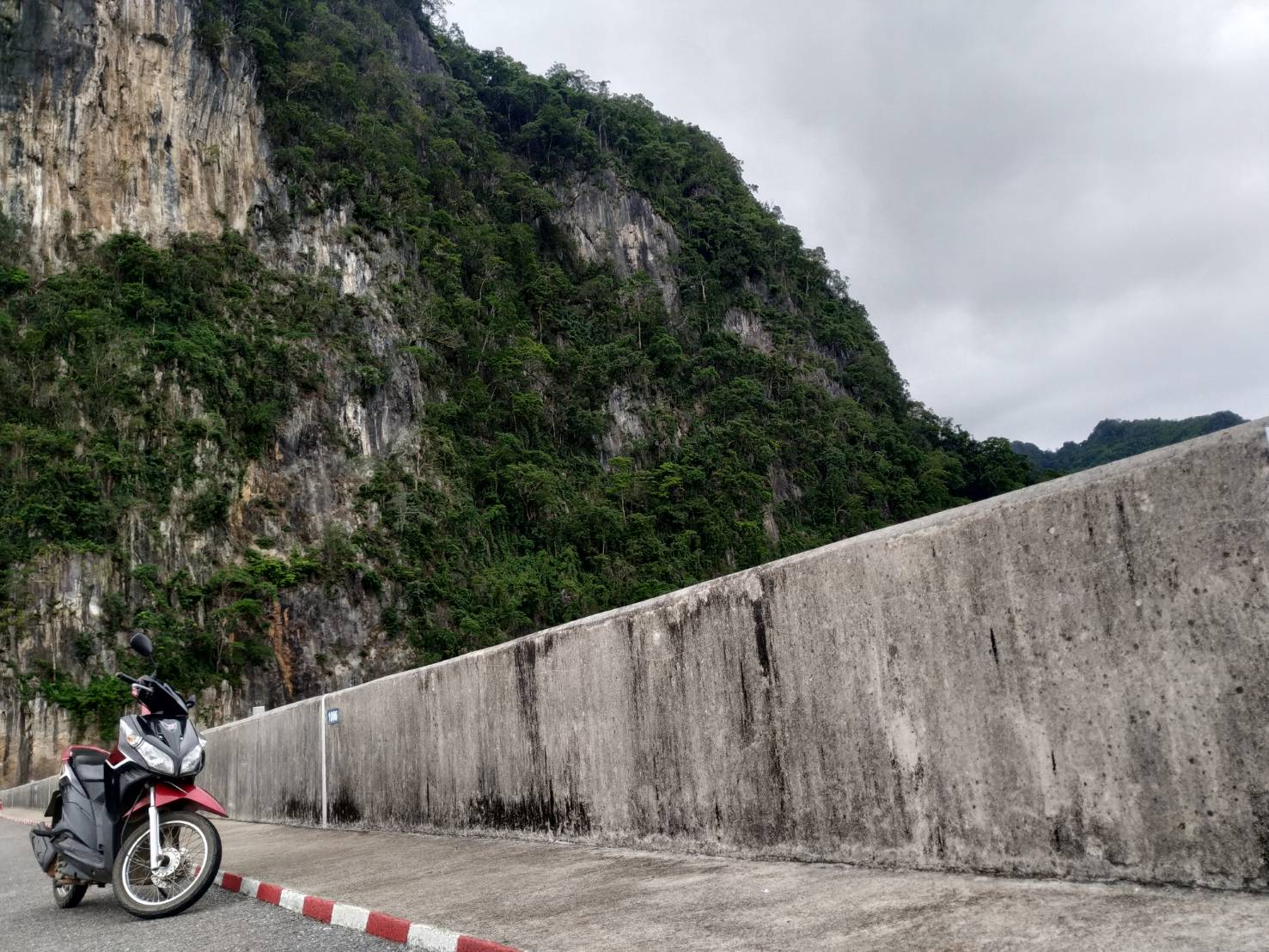 ไปค่ะขี่ไปต่อเป้าหมายของเรา 100 กว่าโลค่ะจะช้าไม่ได้ขับไปชมวิวระหว่างทางไปฟินมากๆ แทบอยากจะนอนกลิ้งที่ข้างถนนเลยแต่ไม่ได้ค่ะ เดี๋ยวรถที่ผ่านไปผ่านมาเขามองไม่เห็นจะเหยียบเอา 5555 โดยระหว่างทางที่เราขี่ไปก็มีช่วงลุ้นกันแบบภาษาอีสานจะเรียกว่า "กัดแข่วยุมดาก" เลยทีเดียวเพราะว่านํ้ามันจะหมดค่ะ !! ใช่ค่ะอีกไกลด้วยค่ะกว่าจะเจอปั๊มประมาณอีก 30 กว่าโลถึงปั๊มด้วยความที่แบบอีนี่ต้องขี่ไปลุ้นไปจะหมดระหว่างทางไหมน้อ บิดแรงก็ไม่ได้ด้วยเดี๋ยวหมดไวต้องค่อยๆไปจนไปถึงปั๊มรีบเติมไปทันทีทันใด 60 บาทเก๋ๆ (ก่อนออกมาพี่เจ้าของที่พักเขาเติมมาให้เต็มถังแล้วนะคะ) พอเติมเสร็จเราก็เปิดกูเกิ้ลแมพกางดูก่อนว่าจะไปไหนดี แต่ด้วยแฟนพี่เจ้าของที่พักเขาแนะนำมาว่าเขื่อนวชิรลงกรณ์ก็สวยนะ ไม่รอช้าค่ะฉันไปที่นี้แหละ ไป!! นํ้ามันเต็มถังก็อุ่นใจบิดเร็วไวไปโลดจ้าาา จนเรามาถึงเขื่อนแล้วบอกเลยว่าใหญ่อลังสมกับ.... ที่เลื่องลือนั้นแหละค่ะ (ไม่หารโน๊ะ)