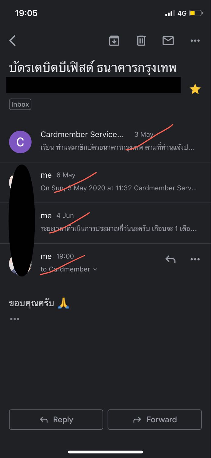 แต่ ไม่รู้การดำเนินการของธนาคารนี้ เป็นแบบไหน, ส่งอีเมลล์มาขอข้อมูล เราตอบกลับแล้ว แต่ไม่มีอีเมลล์ตอบกลับมาเลย, ไม่มีอีเมลล์บอกระยะเวลาการดำเนินงาน,