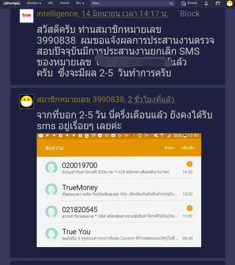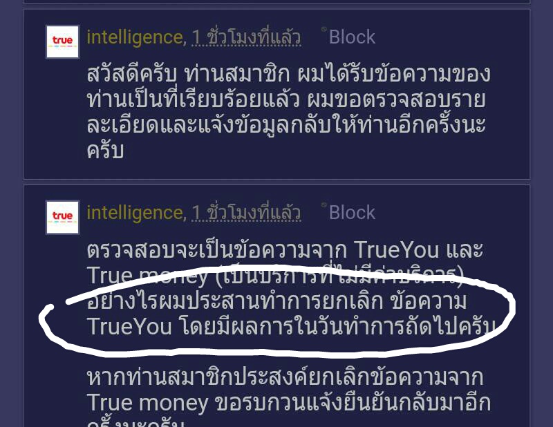 true ยกเลิกข้อความขยะไม่สำเร็จ