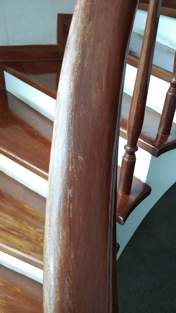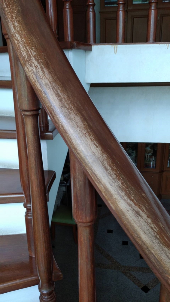 ราวบันไดไม้ 20 ปี มีรอย 10 x 100 ซม. แก้ไขอย่างไรครับ หรือต้องให้ช่าง ขอบคุณครับ