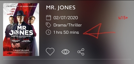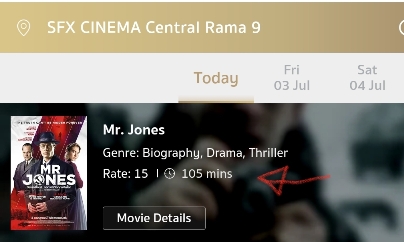 เห็นมีหนังฝรั่งเข้าใหม่สัปดาห์นี้เรื่อง Mr.Jones (2019) กะจะไปดู ก็เลยเช็คคะแนนหน่อยว่าน่าจะokไหมที่ IMBD ก็ดูคะแนนแล้วน่าจะOK ก็กะจะไปดู แล้วก็เข้าAppไปเช็ครอบของทั้ง SF และ Major พอเช็คว่าจะไปดูโรงไหนดีก็สังเกตุเห็นระยะเวลาฉายหนัง คือจาก IMBD มันลงไว้ 2 ช.ม. 21นาที แต่ของโรง Major ลงไว้ 1 ช.ม. 50 นาที และของ SF ลงไว้ 105นาที(ก็คือ 1 ช.ม. 45นาที) ตามรูปข้างล่างตามลำดับ คือมันหายไปครึ่งช.ม.ได้เลย