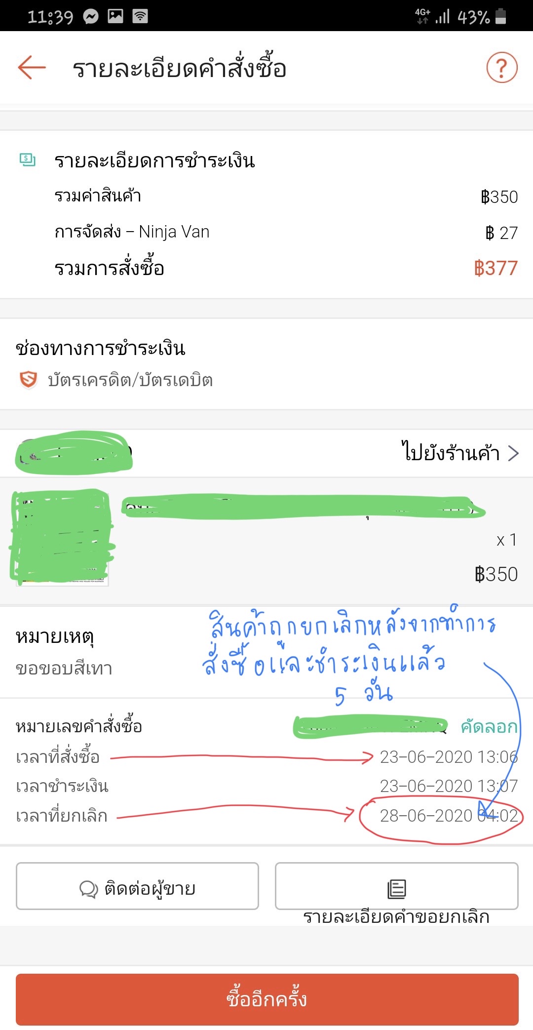 ประสบการซื้อของผ่านแอปออนไลน์ครั้งที่เสียความรู้สึกกับร้านค้า