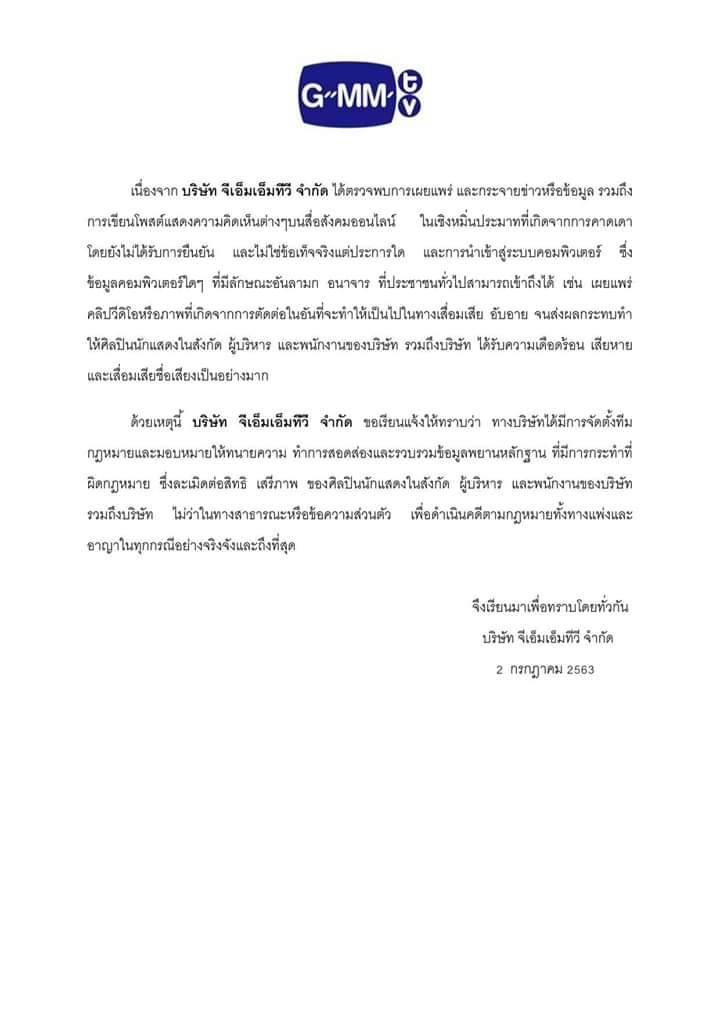 ตามหัวข้อค่ะ ต้นสังกัดอย่าง gmmtv ร่อนจดหมายออกมาแบบนี้ อยากรู้ว่าเกิดอะไรขึ้นอีกหรือคะ ใช่เรื่องดราม่าเมื่อคราวก่อนหรือเปล่า
