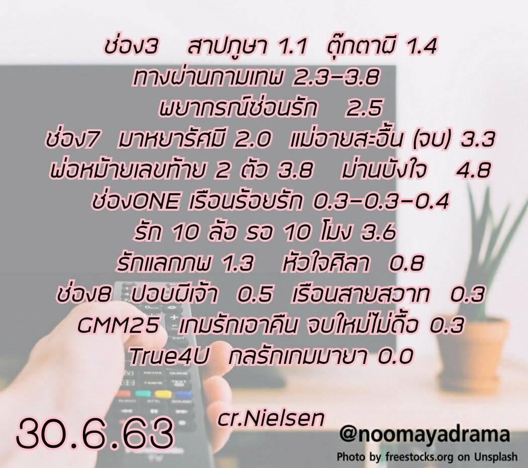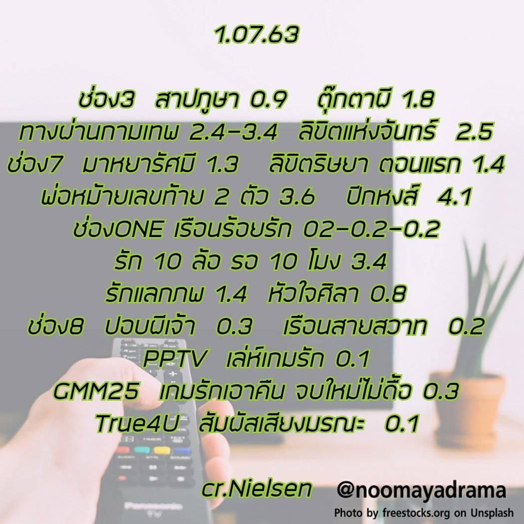 เรตติ้งละคร 30มิ.ย.-1ก.ค. 63,