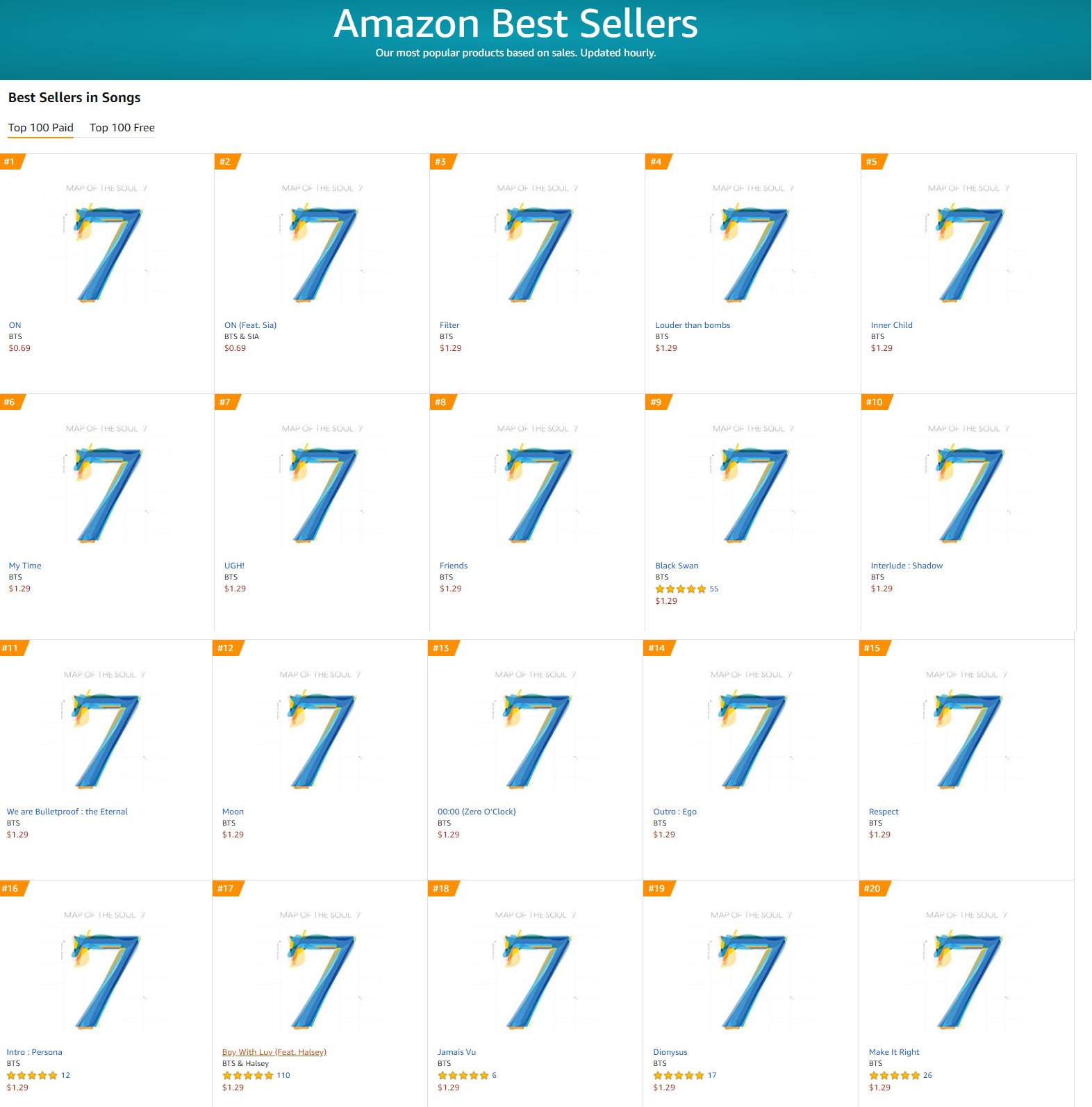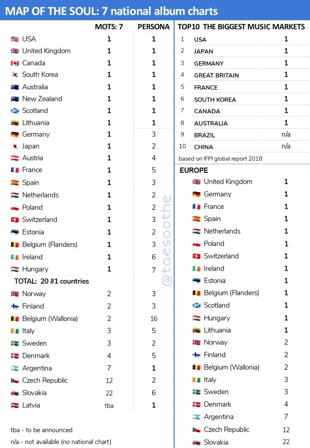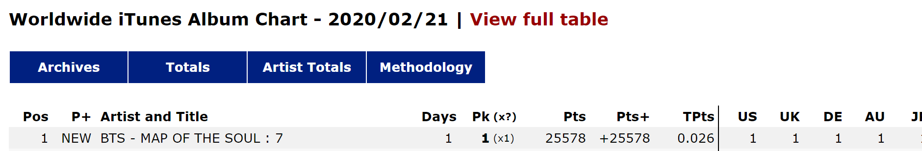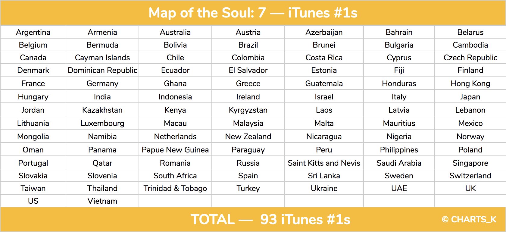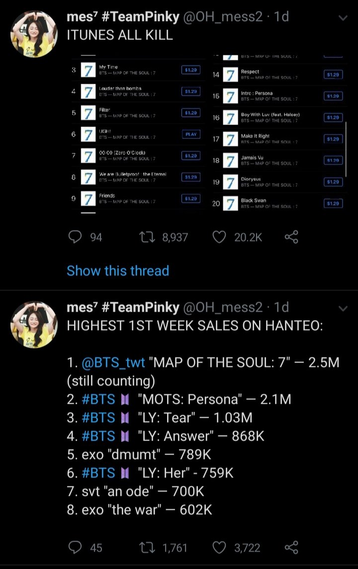 - อัลบั้ม Map of the Soul:7 ขึ้นอันดับ 1 iTunes 93 ประเทศ