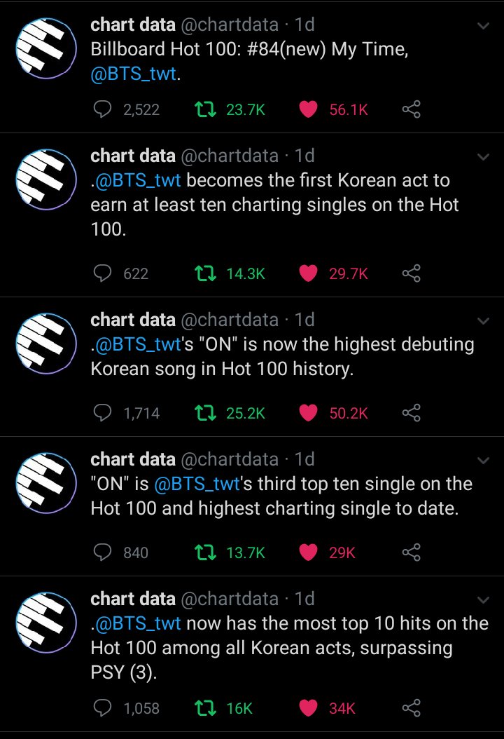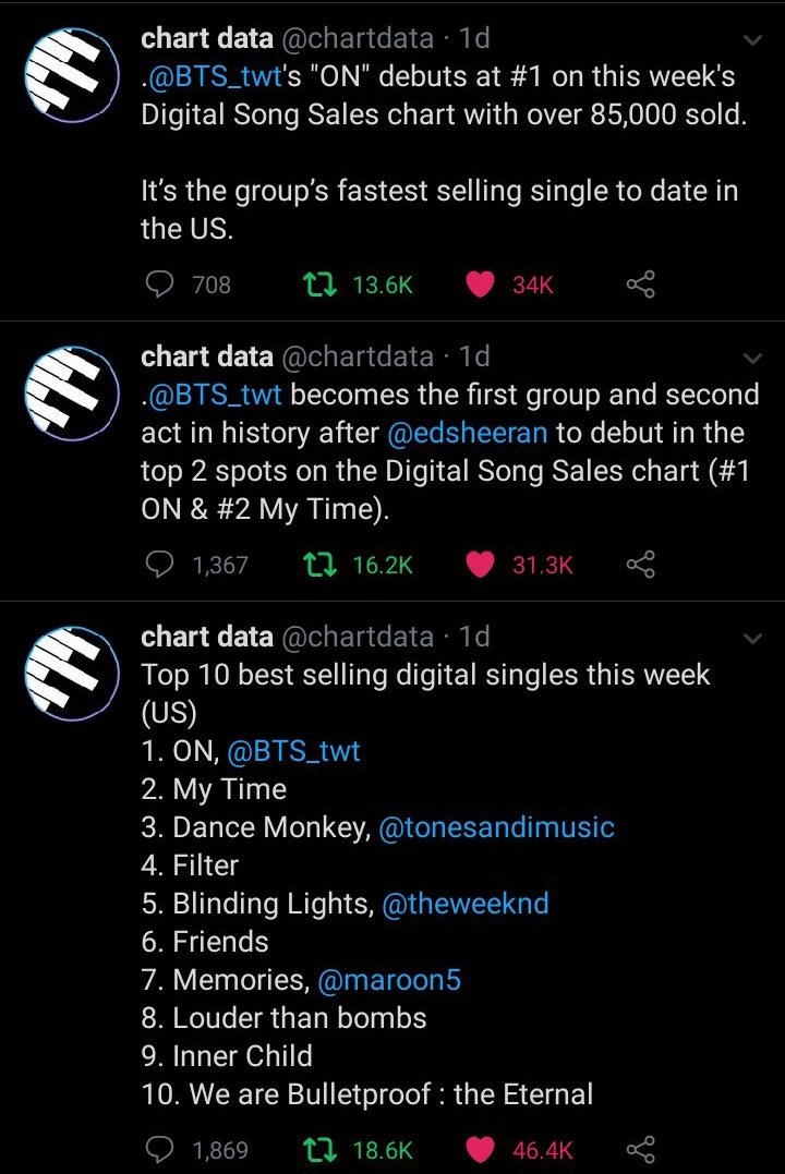 - เพลง ON ติดอันดับ 4 ชาร์ตบิลบอร์ด HOT 100