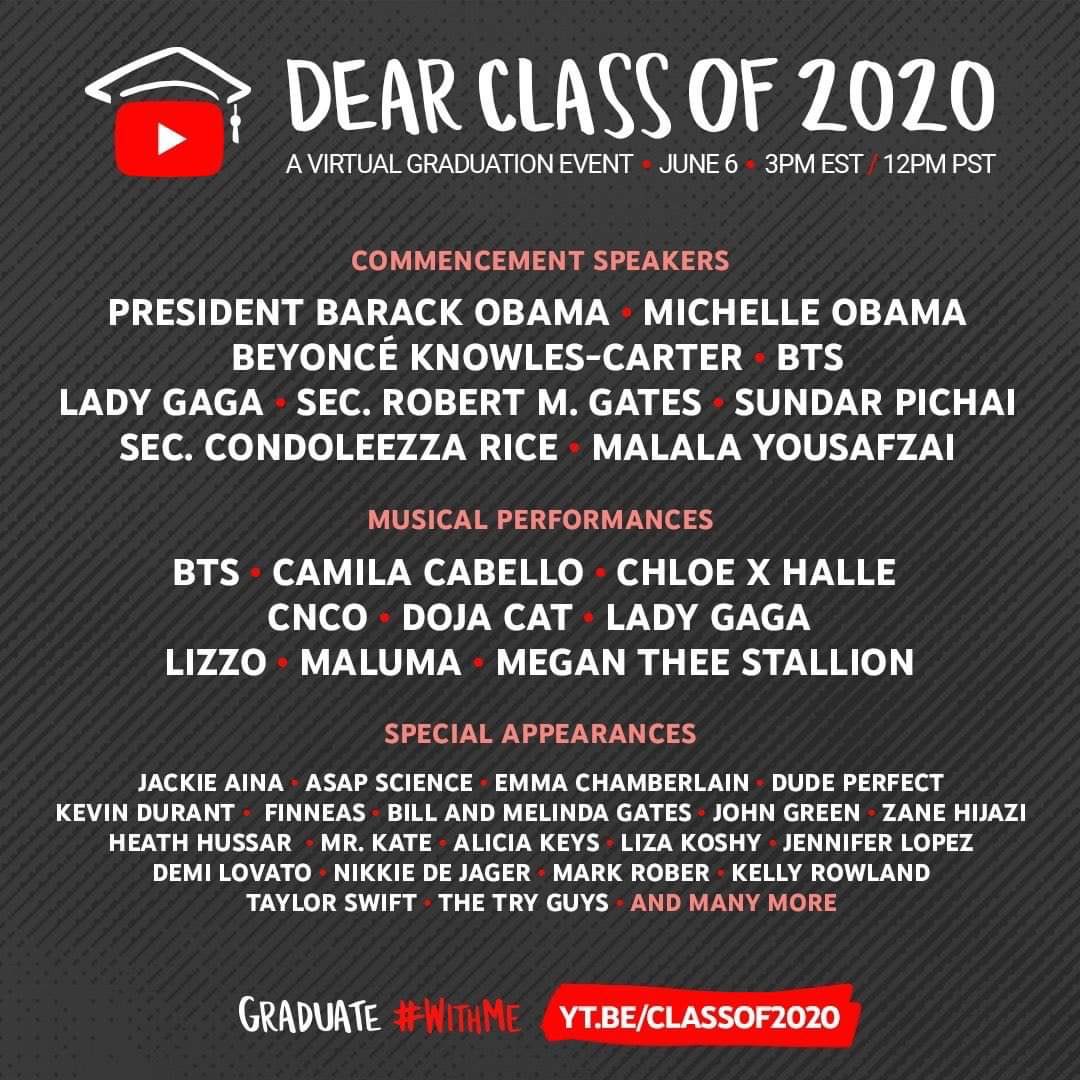 - บังทันร่วมขึ้นกล่าวสุนทรพจน์ร่วมกับ บารัค โอบามา, Lady Gaga และศิลปินชื่อดังให้แก่นักเรียนนักศึกษาที่จบใหม่ ในงานจบการศึกษา Dear Class 2020 ในสหรัฐอเมริกา
