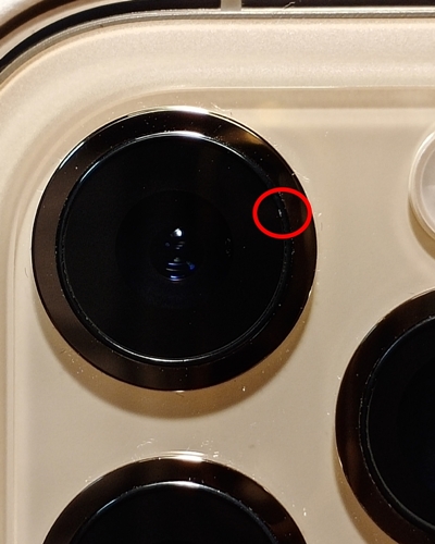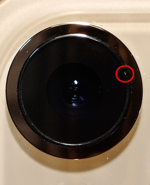 - แต่พอพลิกดูเลนส์กล้องหลัง พบว่า มีจุดเล็กๆขนาด หนึ่งมิล ติดอยู่ที่ขอบ ตามรูป ใช้ผ้าเช็ดเลนส์เช็ดเบาๆ ก็ไม่ออก