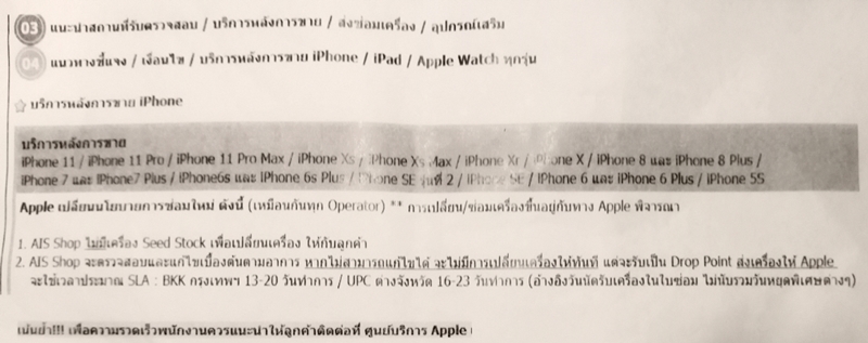 - พนักงานสาขาบอกว่า เปลี่ยนเครื่องไม่ได้ !!! ให้ไปคุยกับ Apple Store ที่ไอคอนสยาม เผื่อว่าทางโน้น จะเปลี่ยนให้ จะทิ้งเครื่องไว้ที่ Shop ก็ได้ แต่ใช้เวลาหลายวันนะ ให้เลือกเอา ว่าแล้ว ยื่นกระดาษมาให้ 1 แผ่น มีข้อความย้ำเตือนว่า “Apple เปลี่ยนนโยบายการซ่อมใหม่แล้ว”