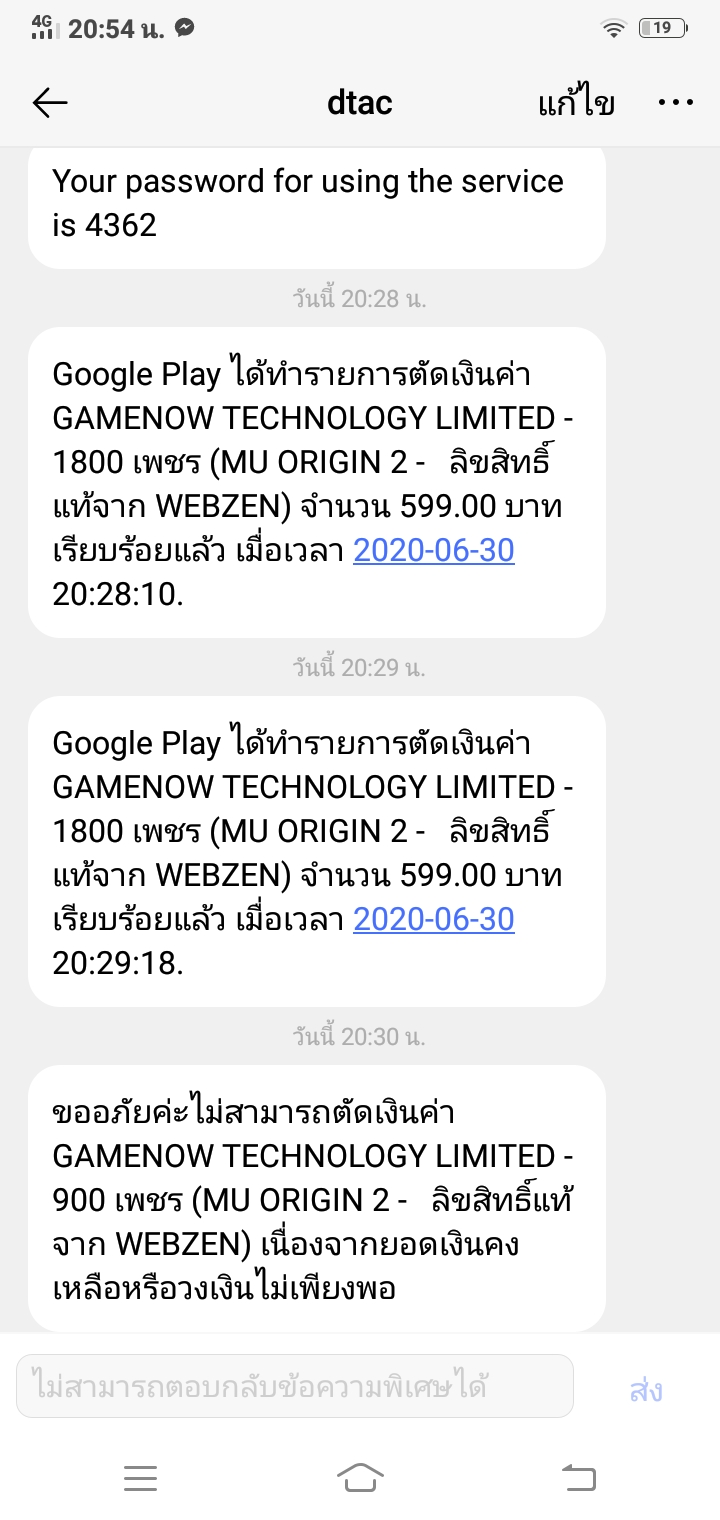 ได้เติมเงินให้ลูกค้า 200 บาทถ้วนเเต่เงินไม่เข้า sms ไม่มี เชคยอดตังเป็นศูนย์ ดึงเงินคืนก็ไม่ได้ ไปดูในข้อความมือถือลูกค้าพบว่ามีการซื้อเกมใน google play ais มัน