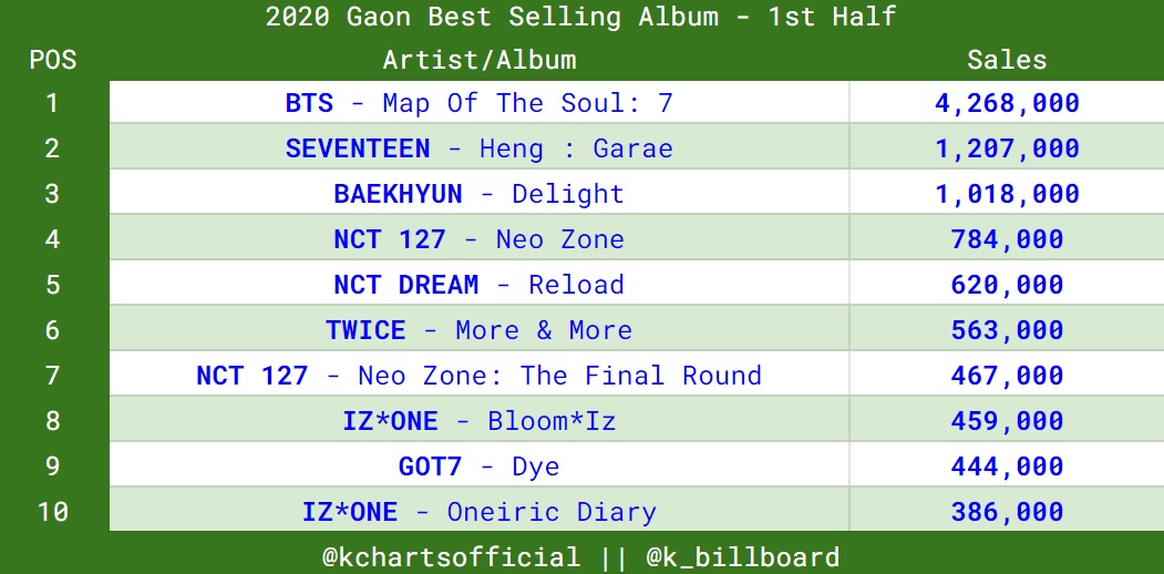 [BTS] ครองอันดับ 1 ชาร์ต GAON , ยอดสตรีม Spotify , ยอดวิว Youtube ประจำครึ่งปีแรกของ 2020