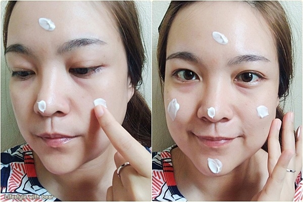 มาลองใช้ที่ผิวกันเลยดีกว่า...วิธีใช้ เริ่มด้วยการล้างหน้าให้สะอาดจากนั้นเราจะแต้มครีม 5 จุดที่ใบหน้าจากนั้นทำการนวดเลยจ้า นวดวนเป็นวงกลม วนไปเรื่อยๆ อย่างเบามือ เว้นบริเวณรอบดวงตานะ นวดๆ ไปจนรู้สึกว่าครีมซึมดีประมาณ 5 นาที (เทคนิคเราคือเอาครีมไปแช่เย็นก่อนนวดเพิ่มความฟินนนน และเวลานวดเราจะนวดแบบยกขึ้นนะจะได้เหมือนเป็นการยกกระชับผิวไปในตัวด้วยจ้า ^^ ) จากนั้นล้างออก ถ้าใครที่มีเวลาสามารถนวดแบบนี้ได้ทุกวันเลยนะ หรือถ้าเวลาน้อย วันเว้นวันก็ได้อยู่
