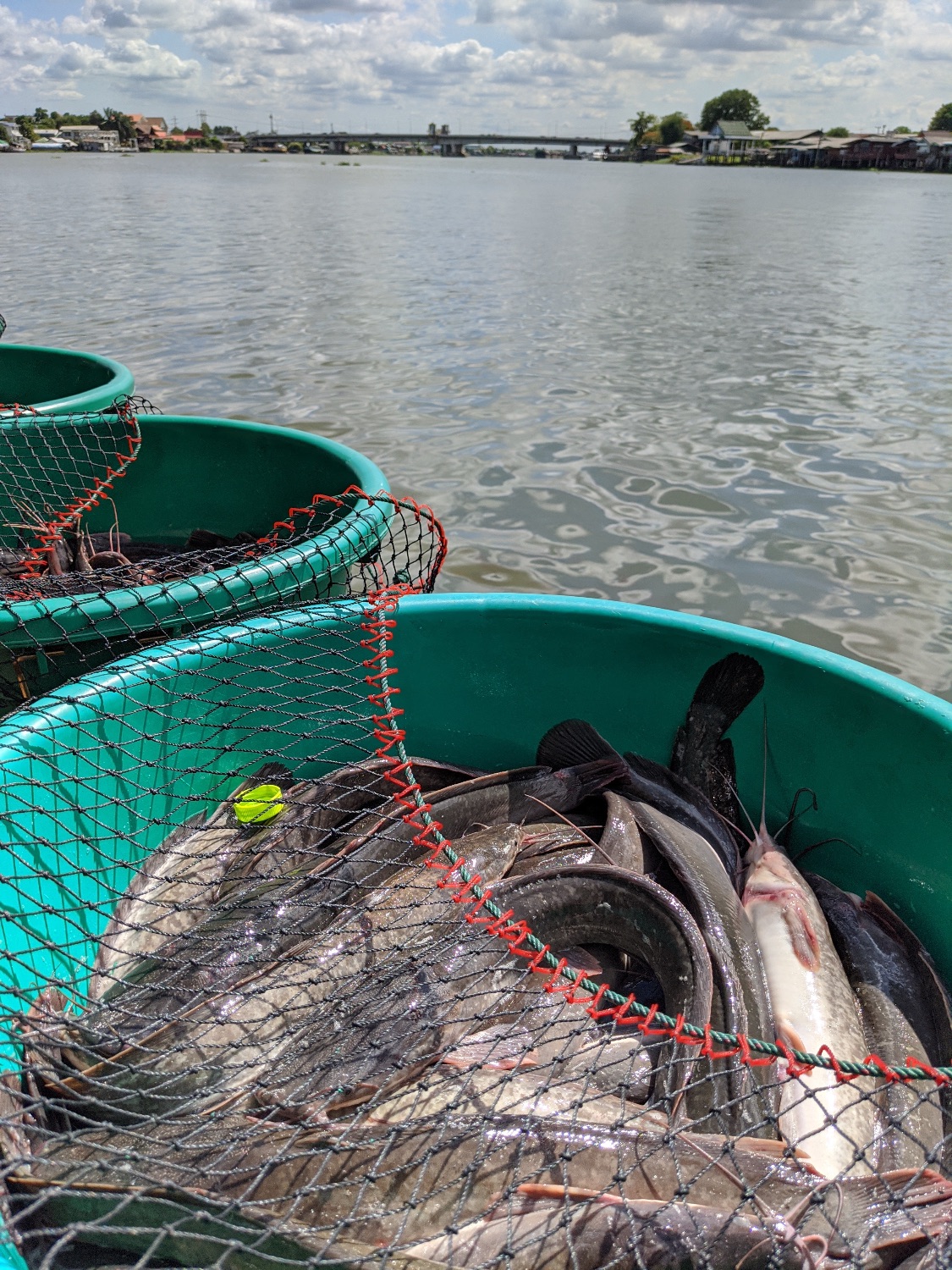 พอดีที่แผงปลา เพิ่งมาลงปลาพอดี เวลาประมาณ 9.00 น. เราเลยเหมามาเลยทั้งล็อต 100 กิโลพอดี และก็ปล่อยให้ปลาๆทั้งหลายว่ายลงไปในแม่น้ำเจ้าพระยา